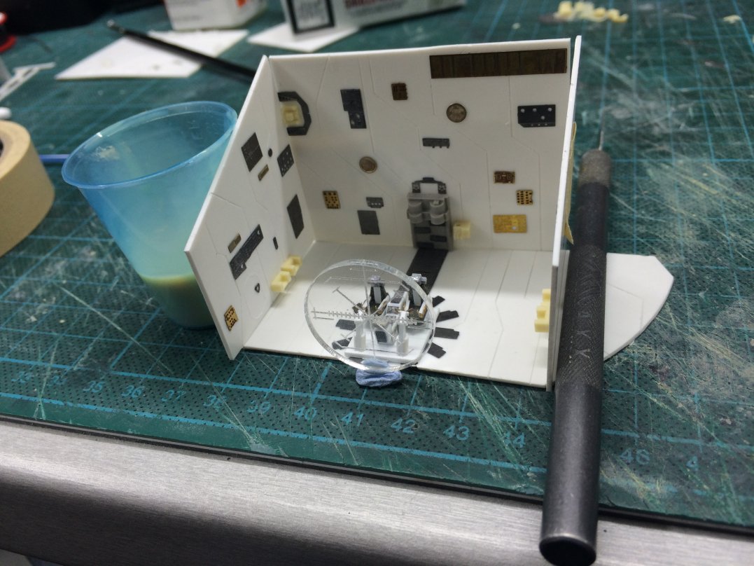 Meinst Du den Bereich mit den zwei Hilfstriebwerken? Leider gibt es überhaupt keine Bilder der Comet in der Seitenansicht, alles nur perspektivisch. Ich hab zum Glück die Master für die Zwischensektionen größer gebaut, hier sind sie nur kleiner gesägt. Kann ich also ohne Probleme ändern.