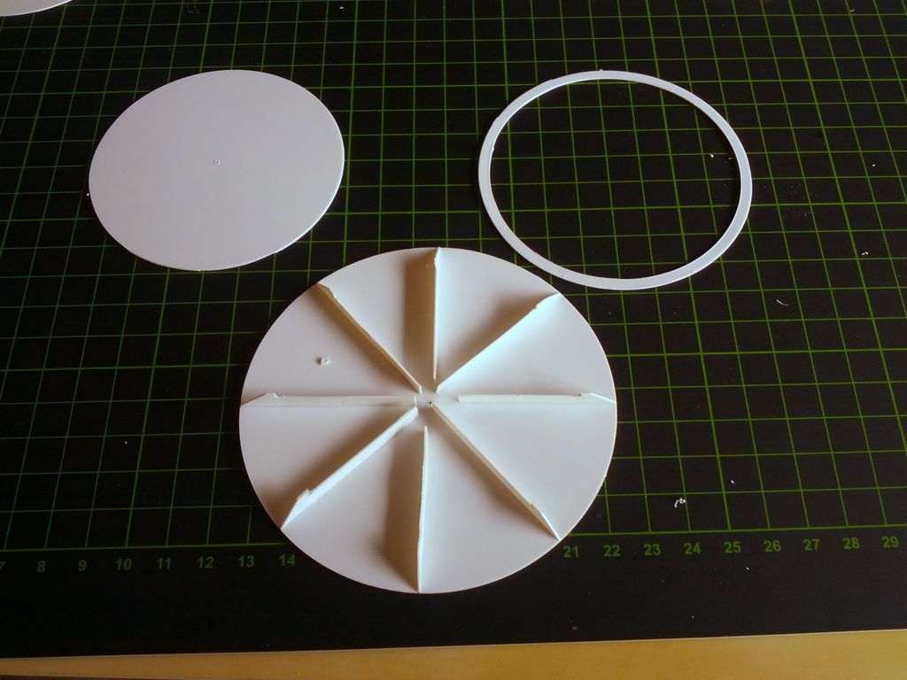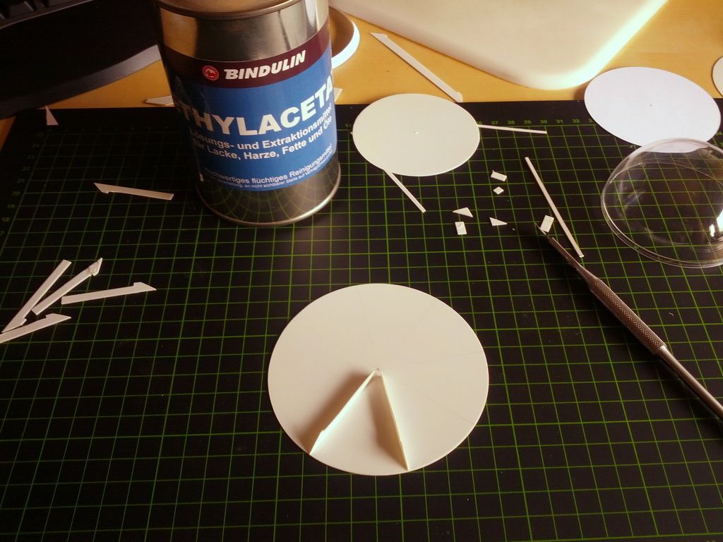 Heute habe ich mit der Konstruktion des oberen Konus verbrachte. Untere Platte hab ich mit meinen neuen