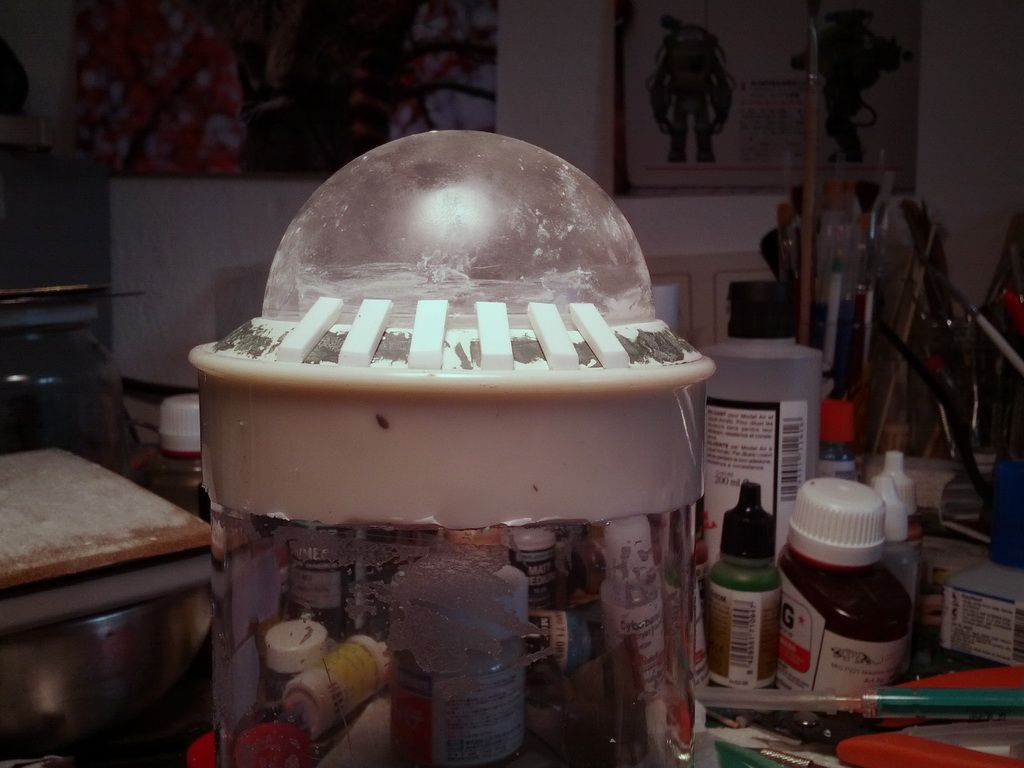 Was mich dann richtig aufgehalten hat, war der doofe Ring. Der schliest den oberen Konus zum eigendlichen Dome ab.