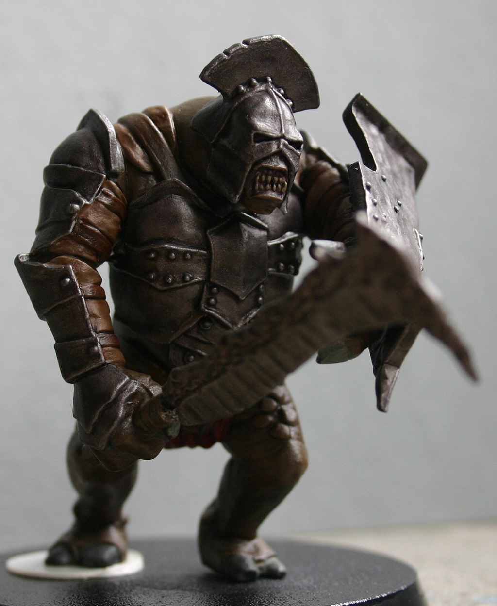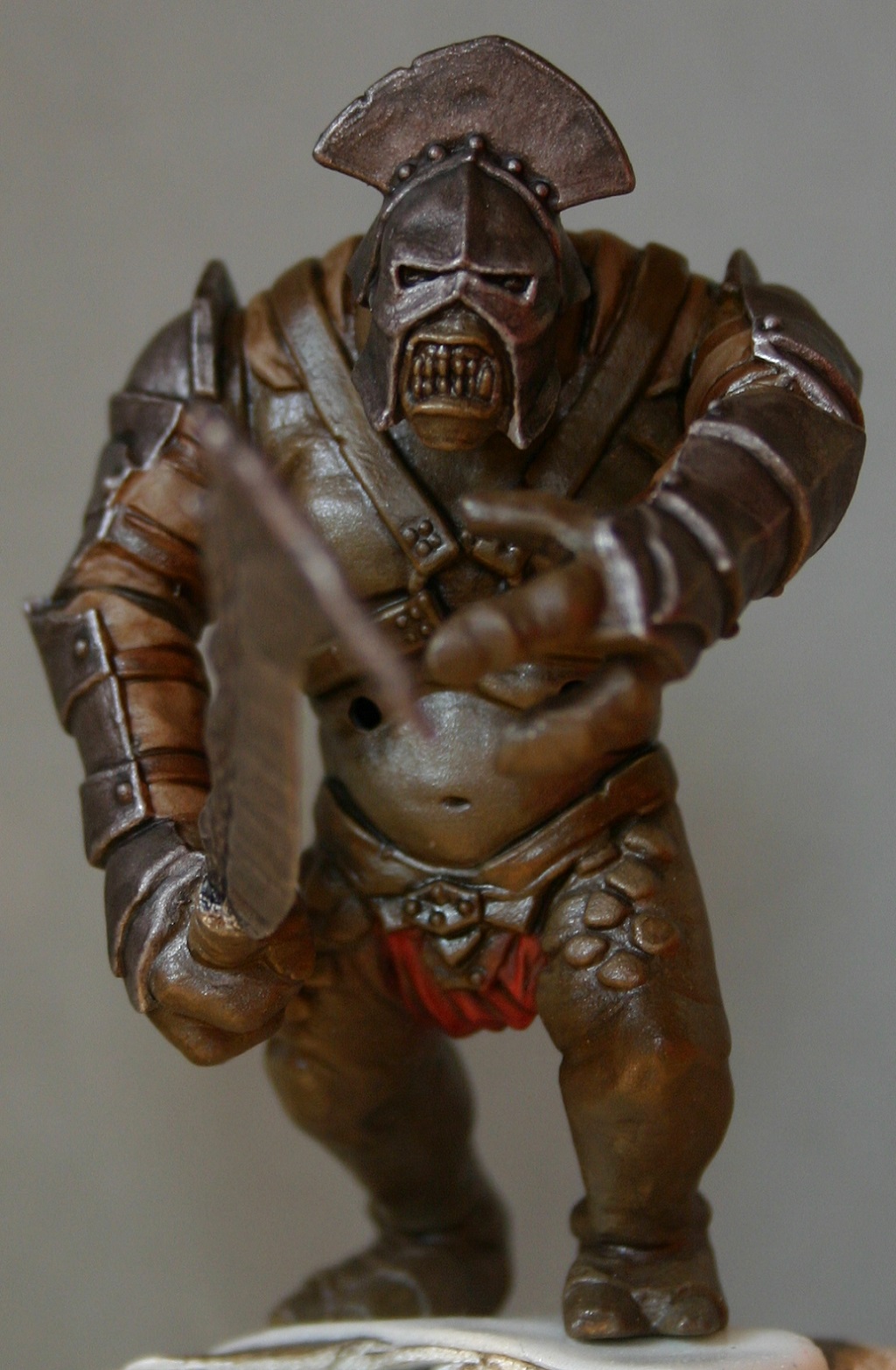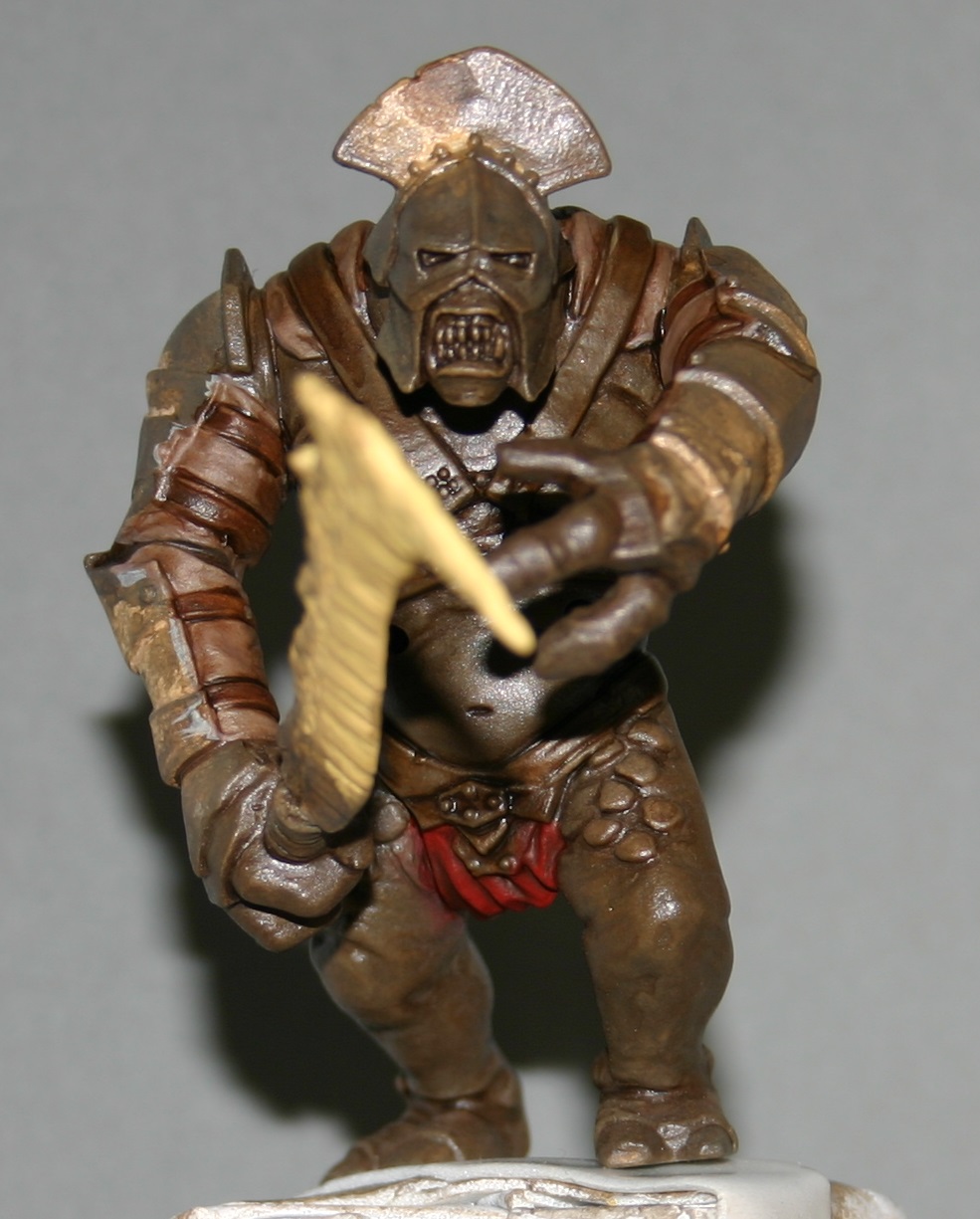 Sheriff, der nette Herr aus Mordor ist nur in Sachen Haut, Lederbänder, Stoffteil und diesem Oberkörpergeschirr fertig! Zähne, Zahnfleisch, Rüstung und Waffe kommen jetzt erst zum Zuge! Ist also noch einiges dran zu malen an dem Burschen.
