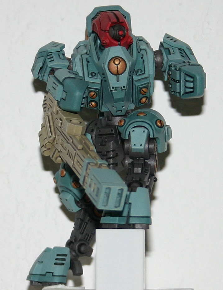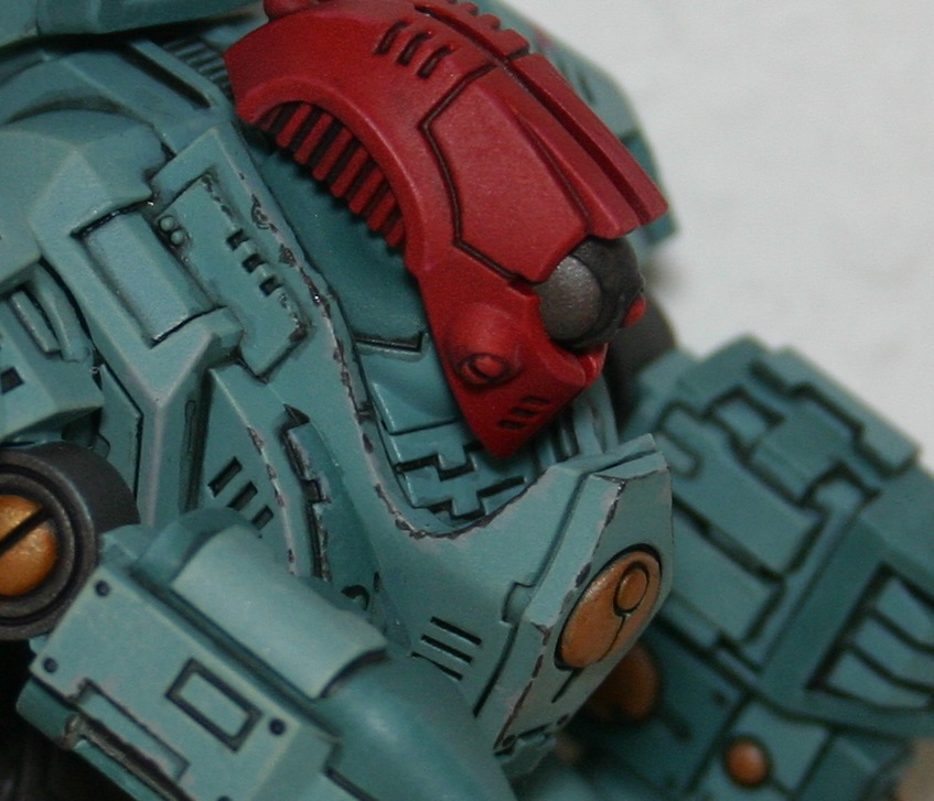 Aber selbst wenn man sich jetzt mal das Original von Games Workshop anschaut: Der ist jetzt nicht übermässig gut bemalt (was aber andere, marketingtechnische Gründe hat), aber selbst hier sind alle Abnutzungen ganz gezielt und kontrolliert aufgemalt worden und erschaffen so zusammen ein stimmiges Bild.