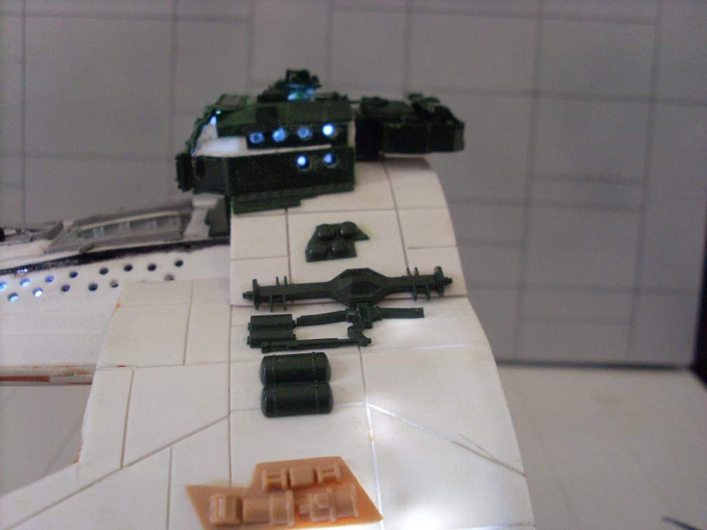ich habe auch ein shattel aus ein heli von ein schiffs kit gebastellt und zwar hab die nase und das heck? hinterteil gekürzt und an der nase habe ich diese ovalen dinksda