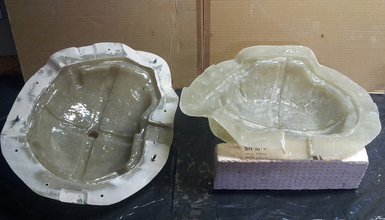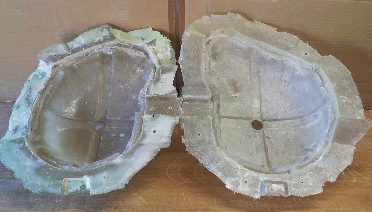 Gerade eben hab ich dann nochmal die Innenseite mit einer Schicht Harz bepinselt. So werden viele Unebenheiten egalisiert und es entsteht (hoffentlich) eine glatte Oberfläche für den anschließenden Silikon-Abguss