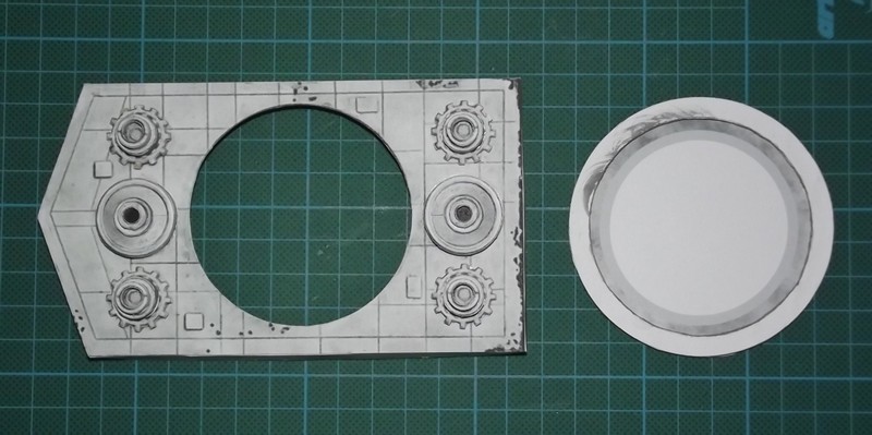 Zuallererst korrigierte ich einen Fehler beim Mörser-Karl-Teil, denn das zentrale Rad saß zu tief. Der innere Ring wurde entfernt und durch einen neuen ersetzt, der auf 2 mm Karton laminiert wurde.