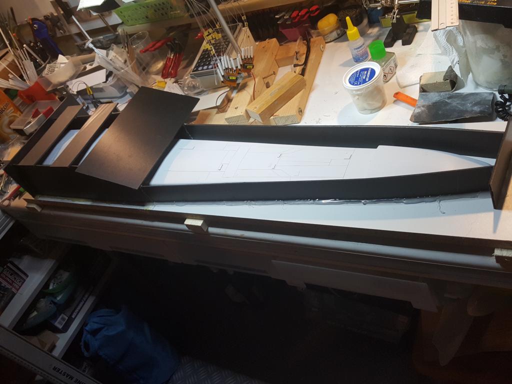 Die zweite Ladung Silikon und Resin ist seit ein paar Tagen da. Also das Unterteil des Rumpfes eingepackt und mit ca. 4 Litern Silikon geflutet.