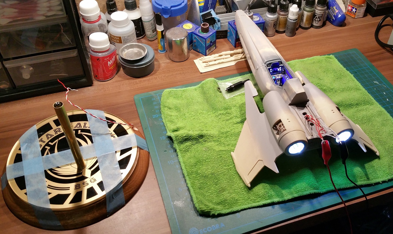 Heute mal Mask Fluid entfernt,Decals drauf und Lichttest gemacht kommt schon gut.