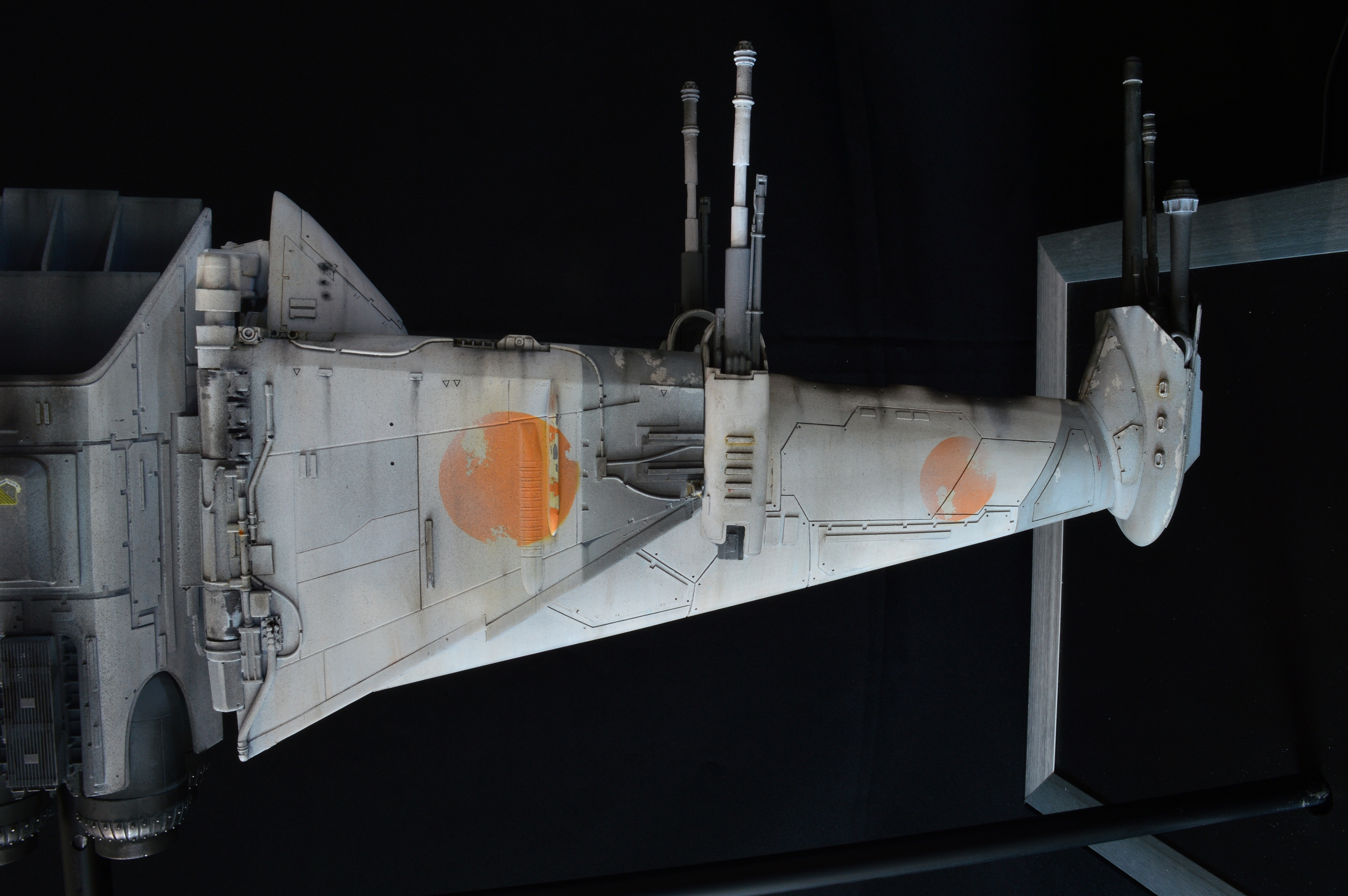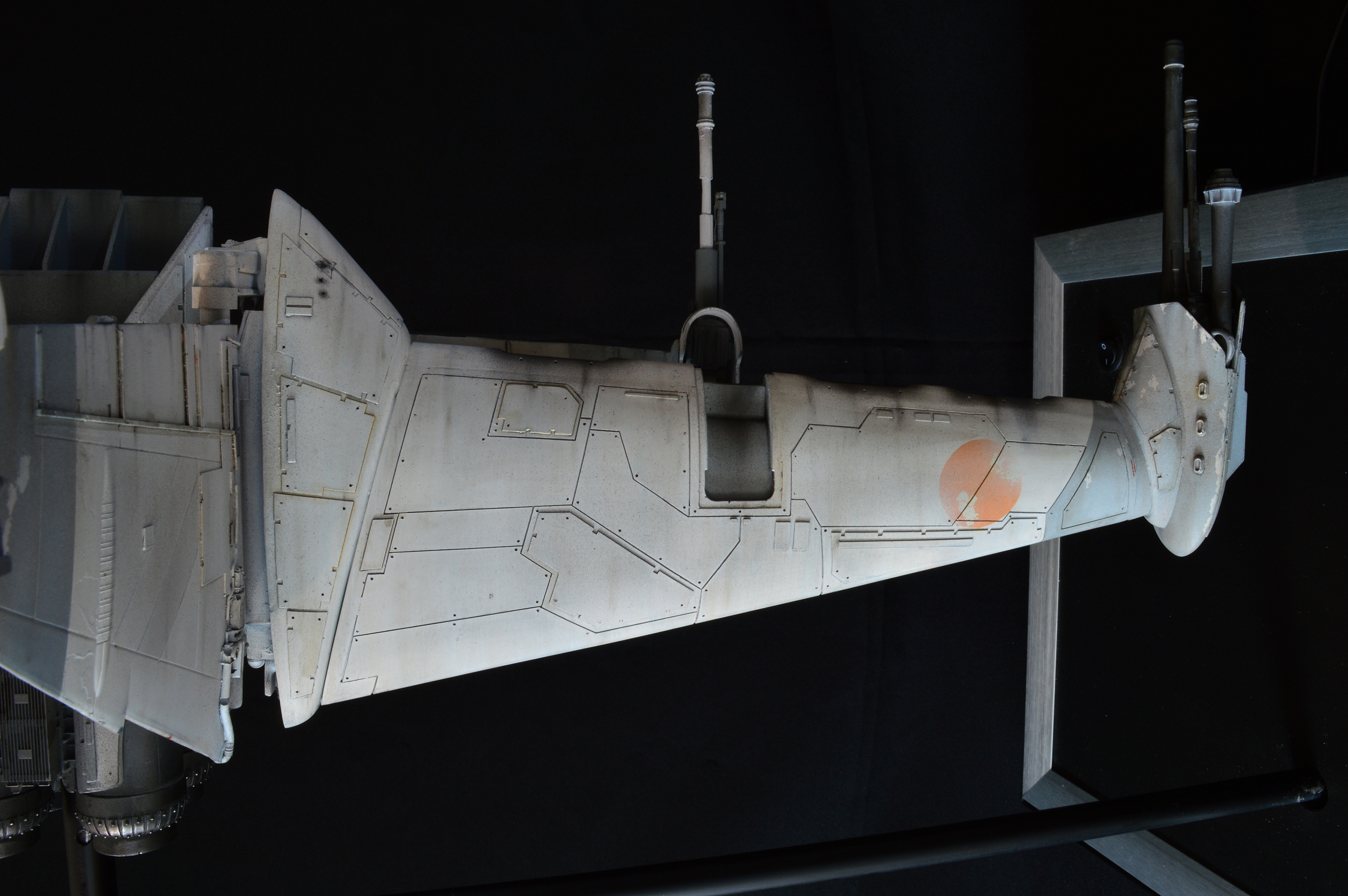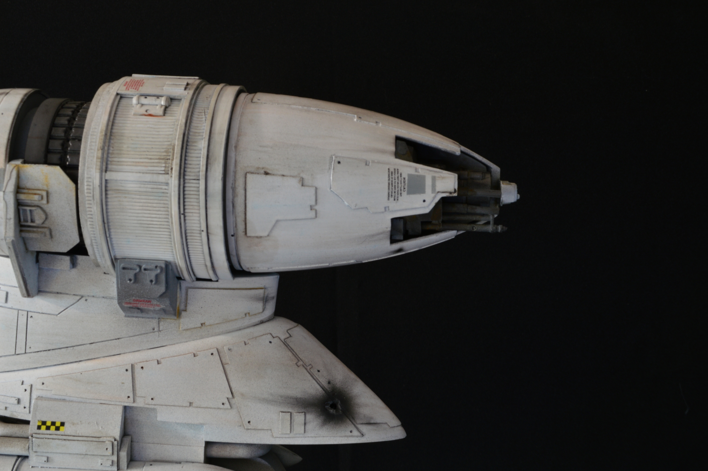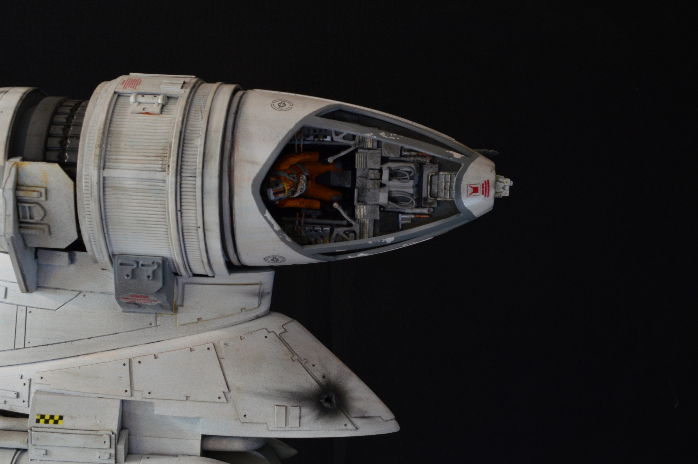 Die Kanten der Decals wollte ich an deinem Modell (die rote Schrift oberhalb des Cockpits zB) erst auch anmerken aber die lassen sich wahrscheinlich gar nicht ordentlich kaschieren. So wie hier am gezeigten Studiomodell sind die vermutlich durch die nachträgliche Alterung deutlicher sichtbar geworden.