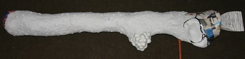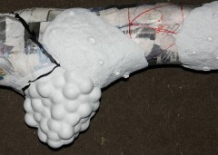 Es ist bisher nur Pappmaché umhüllte Kugeln. Würde später am Rumpf noch ordentlich eingearbeitet werden, so das schlussendlich nur ein Teil der jetzigen FOrm sichtbar wäre.