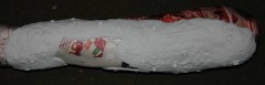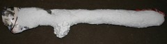 Meine Grundlage ist statt Schaumwurst meist: 2D-Silhouette aus Styro(-por oder -dur je nachdem), meist 40mm-Platten, und soviele aufeinandergeleimt (Holzleim) bis die Breite erreicht ist. Dann die Kanten wegschnitzen. Stabilisierung lässt sich auch gut einbauen.