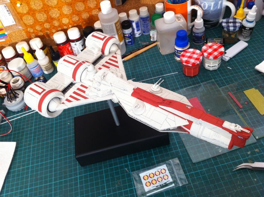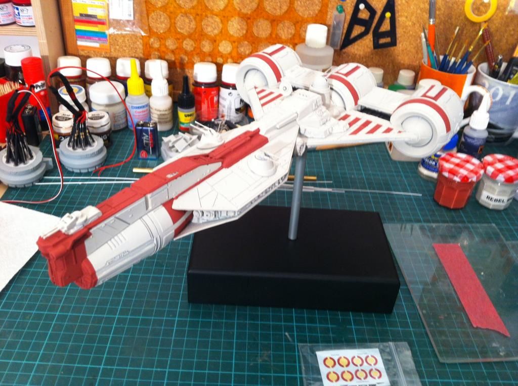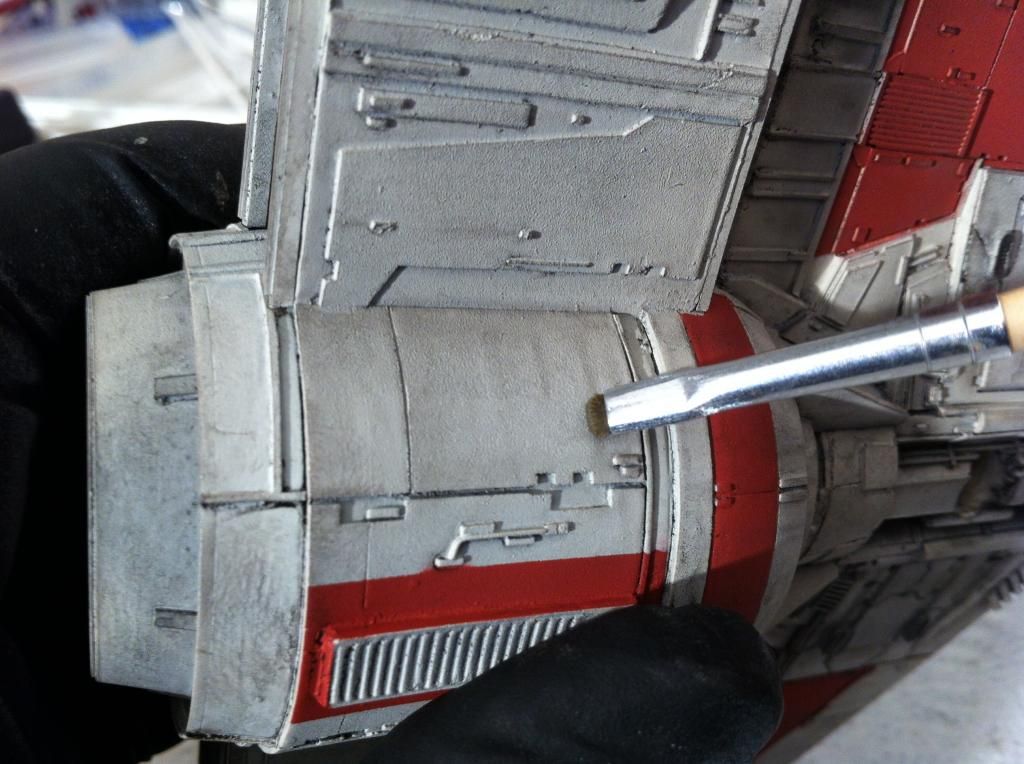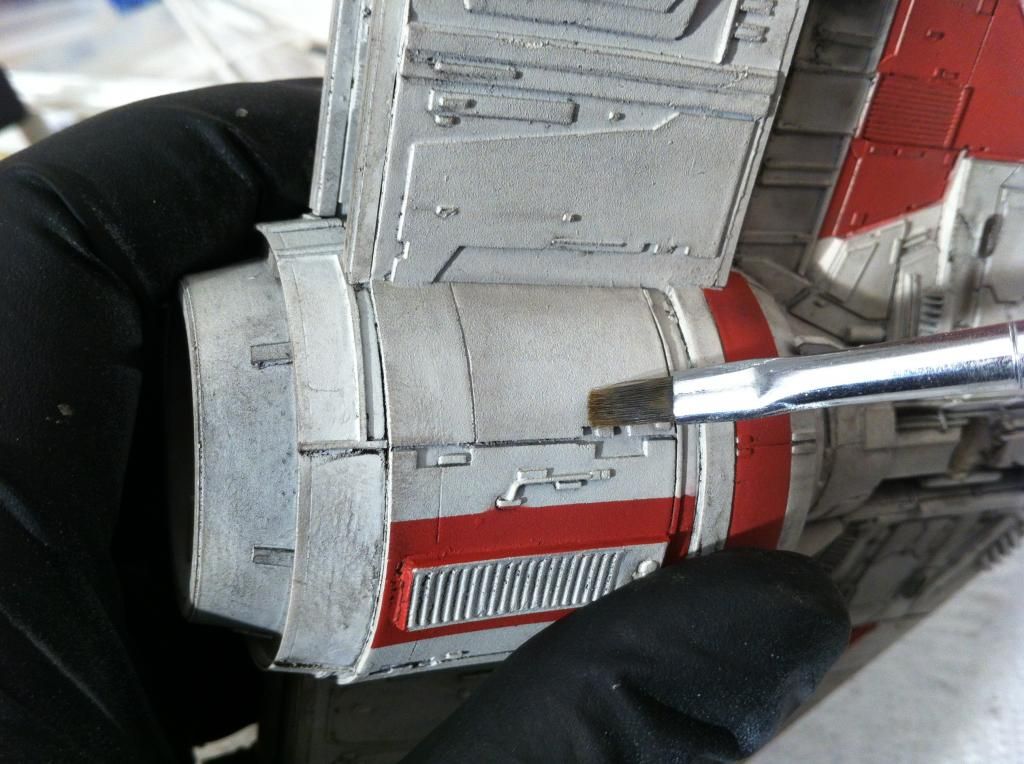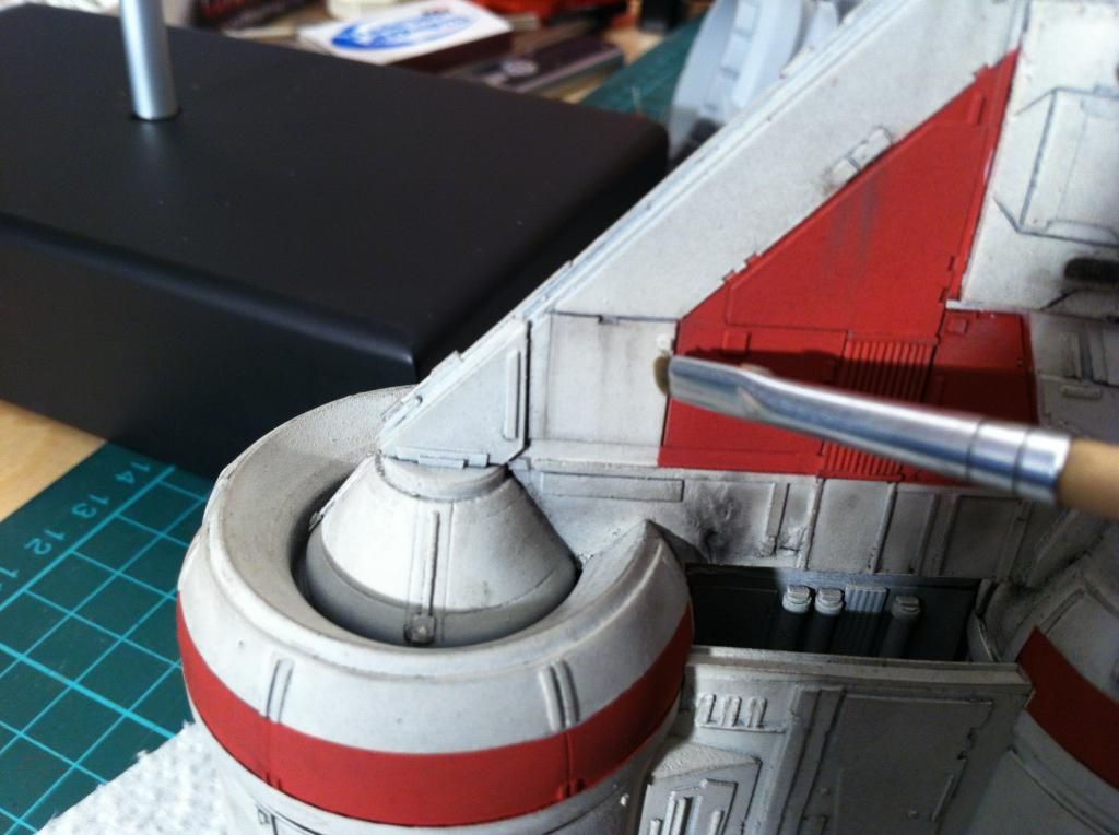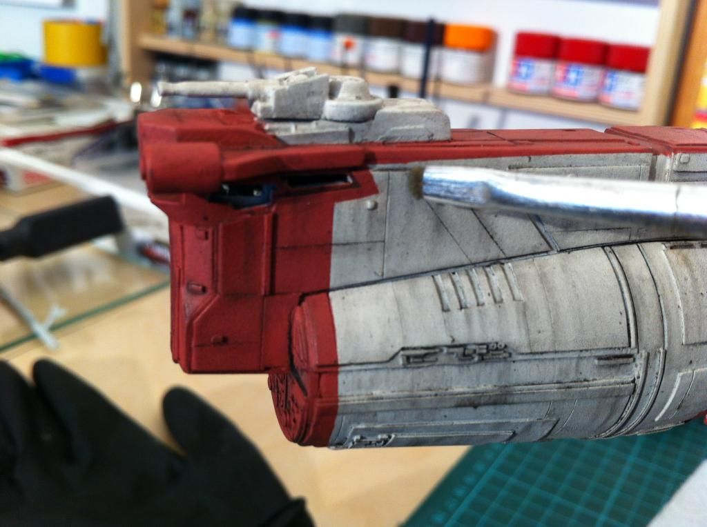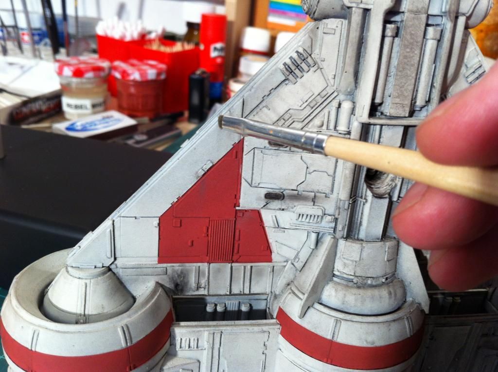 Dann hab ich die roten Markierungen mit dem Pinsel aufgetragen.