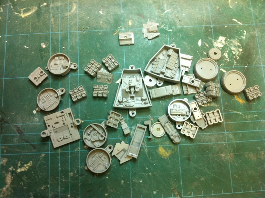Die nachfolgenden Teile vom Fine Molds 1:72 Falcon, die ich zum abformen vorgesehen habe. Die meisten anderen Kleinteile hat mir Stefan schon als Form zur Verfügung gestellt.
