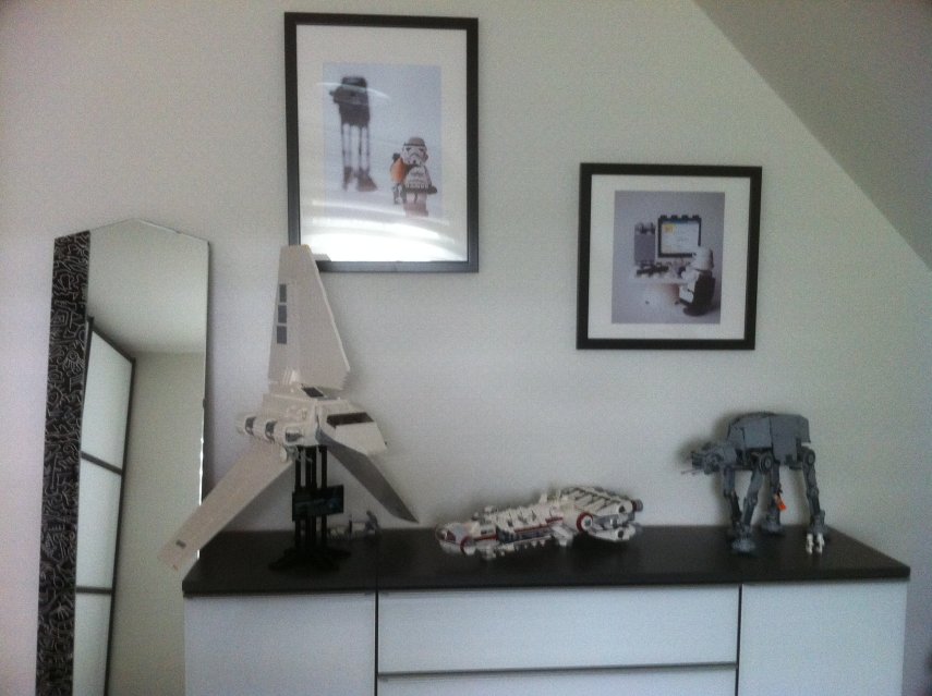 Wir haben das Shuttle, die Corvette und den Walking AT AT im Schlafzimmer stehen, außerdem hab ich noch die Slave, nen X-Wing und jede Menge Indy Kram...