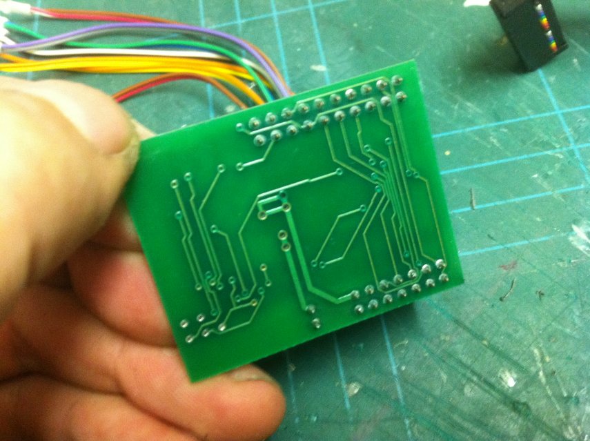 ;D ich trau mich mal: sehe auf Deiner Platine quasi 8 Stränge für die Leds, jeweils ein Plus und ein Minus pro LED. Verstehe ich richtig das jede Led unterschiedlich flackert? Es ist nun die Frage welcher PIC oder MC für das flackern verbaut bzw. programmiert ist, wird für die Led´s Minus geschalten oder Plus um diese anzusteuern, wird jede Led einzeln angesteuert von einen MC Ausgang (Microcontroller)? Sieht wohl so aus weil jede LED ein verschiedens Pattern erzeugt. Du musst den gemeinsamen + oder - je nach dem was geschaltet wird finden und diesen mit einen Schalter unterbrechen, mach doch mal die Kabel ab wenn möglich (Stecker) und mache nochmal ein Bild der Paltine von oben.