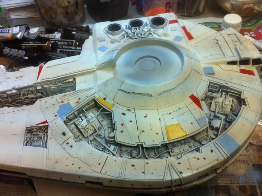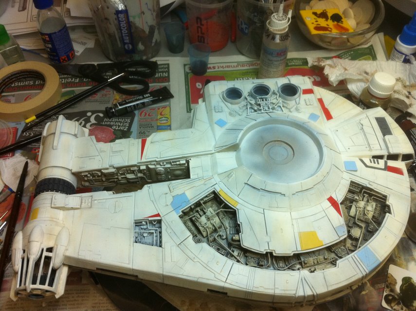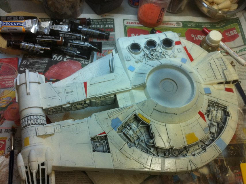 Ich hab noch nie mit Ölfarben gearbeitet, aber das macht richtig Spass. Die Unterseite der Outrider hab ich mal als Testobjekt für verschiedene Farbmischungen missbraucht.