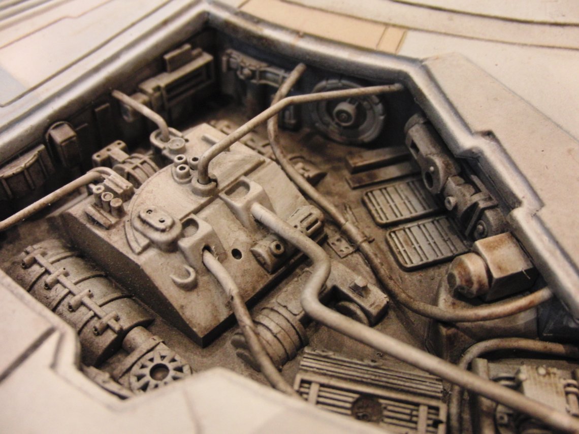Jetzt muß ich meckern  :evil6: ....nu isser oben drauf zu saubär....findest du kein Mittelding ? Ein paar schlieren mehr könnte der Oberseite gut tun oder Ölstreifen wie beim Falken ( kann man sehr gut mit Buntstiften machen ...brauch man keine AB für  :evil6: ) und wo is die R2 Einheit mit dem Schweißapparillo????