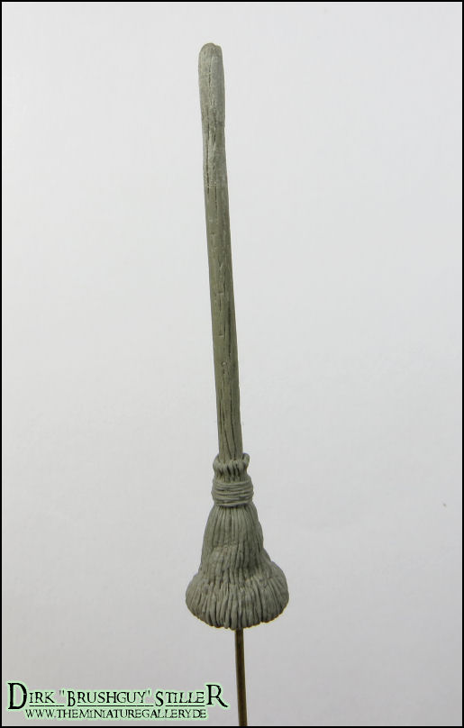 So, der Besen ist an sich fertig. Aber irgendwie ist er mir zu buschig. Im Moment kann ich ihn eigentlich nur grade hinstellen und nicht anlehnen. Also werd ich wohl noch etwas dran ummodellieren müssen.