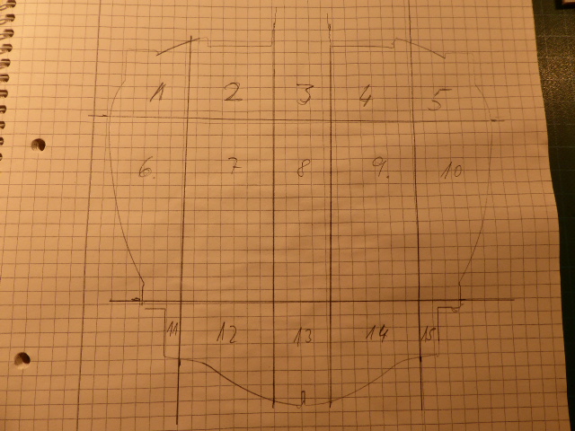 Den Bereich zwischen den Rumpfhälften möchte ich mit Panzerketten füllen. Der Rumpf wird vier mal durchgesägt (2x quer, 2x längs).