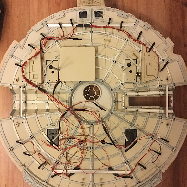 Wenn mir jetzt noch jemand sagen könnte wie hoch der Falcon vom Boden bis zum (geraden) Ausenrahmen ist, könnte ich das ganze auch schon mal auf die passende Endhöhe bringen (als wenn er auf dem Landegestell steht).