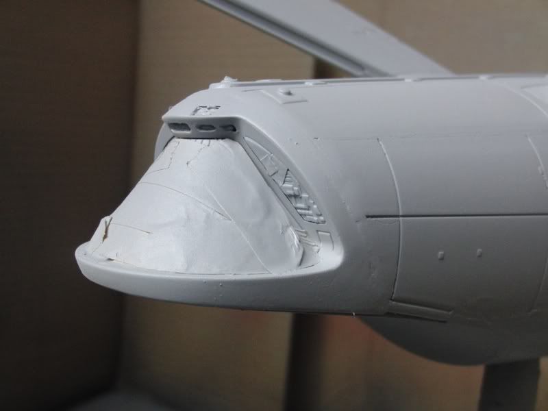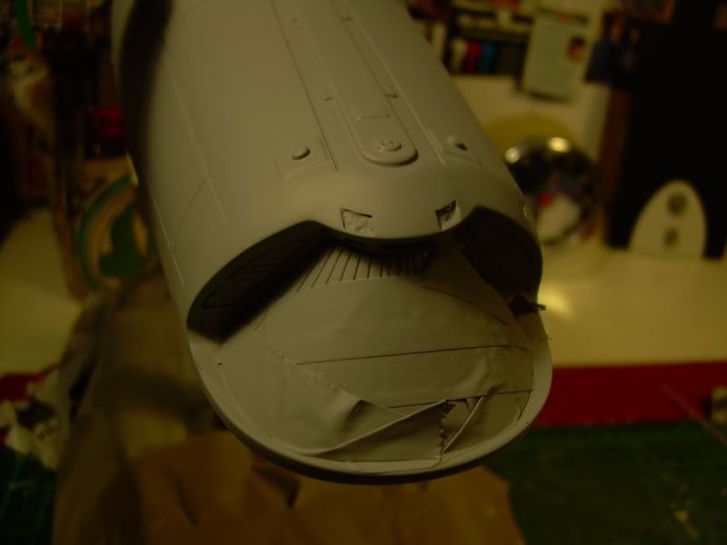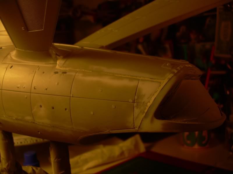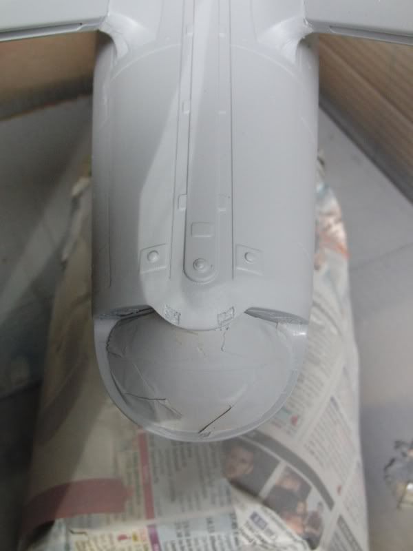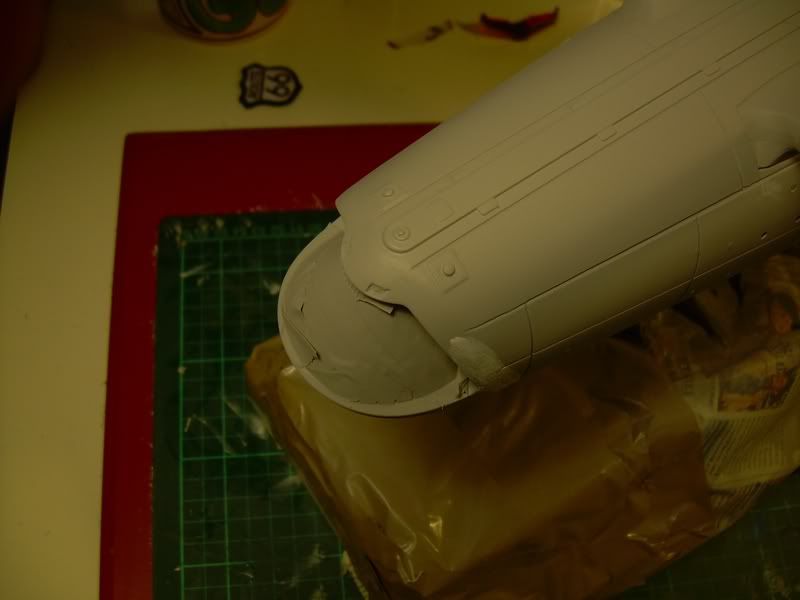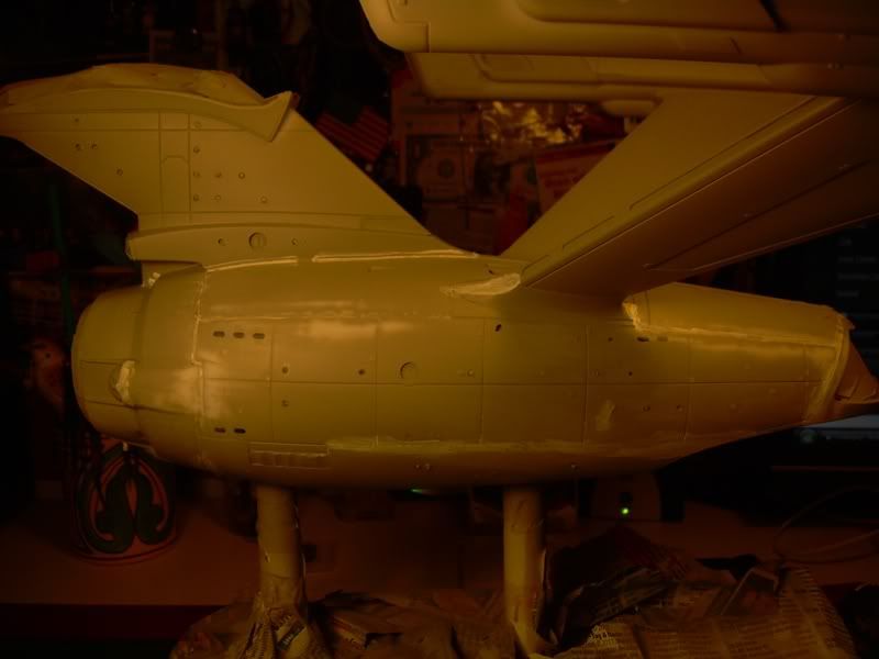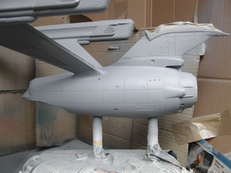 So trotz großer Passungenauigkeiten habe ich jetzt die Schleif und Spachtelarbeiten am Rumpf vollendet  ;D. Morgen werde ich wohl die erste Grundierung aufbringen.