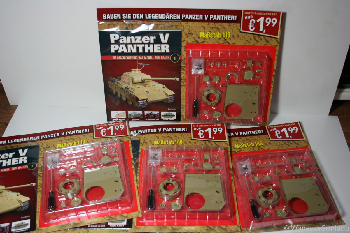 Ich bin an dieser Zeitung vorbeigerauscht und habe die Nase gerümpft, weil es den Panther in der Größe ja schon von Tamiya, Heng Long und Asiatam gibt. Und da fährt er sogar und es gibt ja bereits genug "Aufrüstsets" (Metallrollen, Metallketten, Rohre, ...). Von der Seite "Greeblies für 1,99€" hatte ich es noch gar nicht betrachtet ... aber Turmdach und Kuppel sind aus Metall? Hm ...