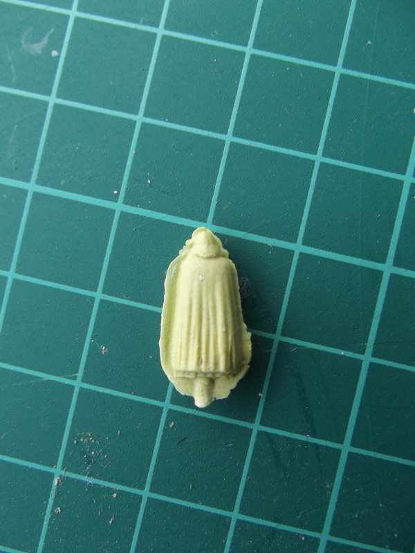 Ich denke auch dass das hinkommt. Ein Gesicht in dem Maßstab wollte ich mir ersparen. Unter der Kapuze wollte ich eher noch mehr Material wegnehmen und dann Schwarz lackieren.