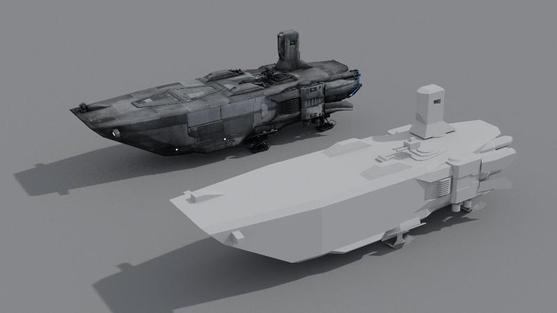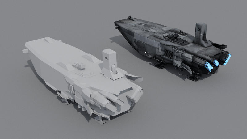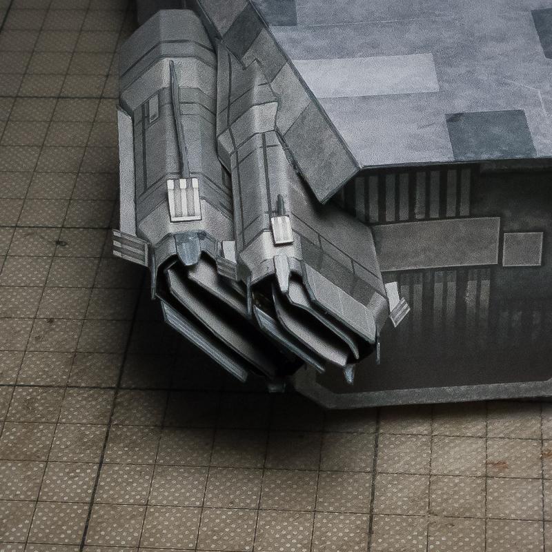 Ein wenig hat sich Hinter den Kulissen schon getan. Beim Umsetzen der Seitenteile inkl. Antriebsmodul hinten und den Boxen unten für das Landegestell, habe ich bemerkt, dass ich die Geometrie der Hülle doch noch etwas Anpassen will. Damit werden die Ausschnitte für die Landeboxen viel einfacher.