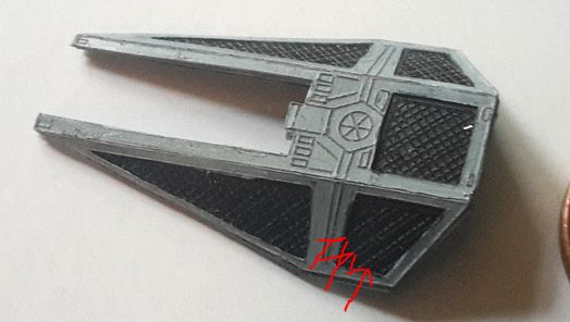 Ich lehn mich mal ganz weit aus dem Fenster und behaupte mal, die TIE-Flügel sind handgemacht ... da legt's Di nieder ...