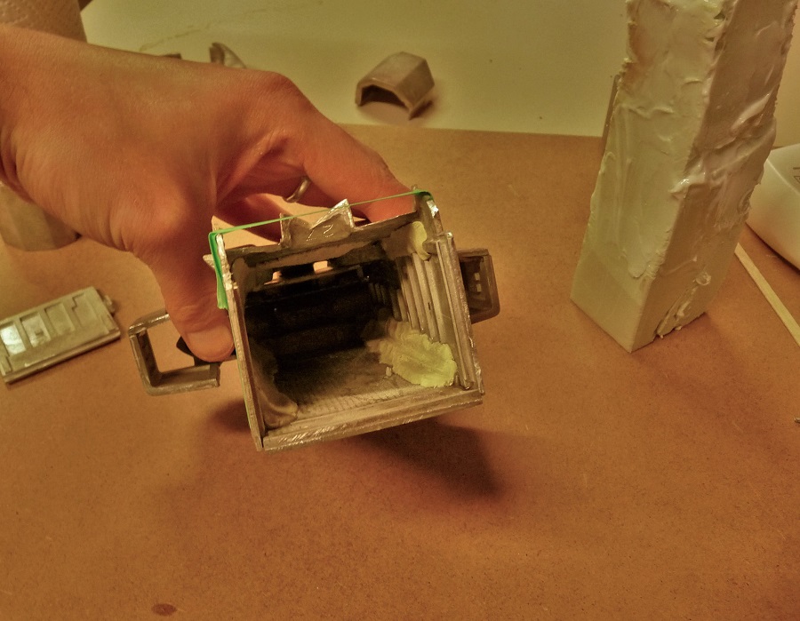 In die Felsen werde ich einige technische Elemente einbauen damit das schön SciFimäßig aussieht. Kabel, Schläuche, Monitore, Verteilerkästen und so weiter.