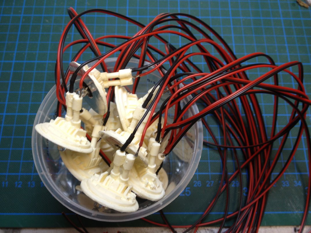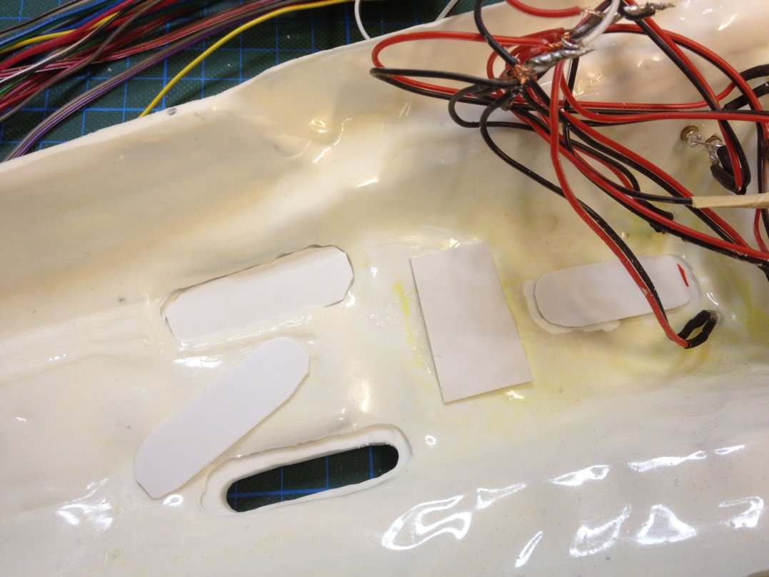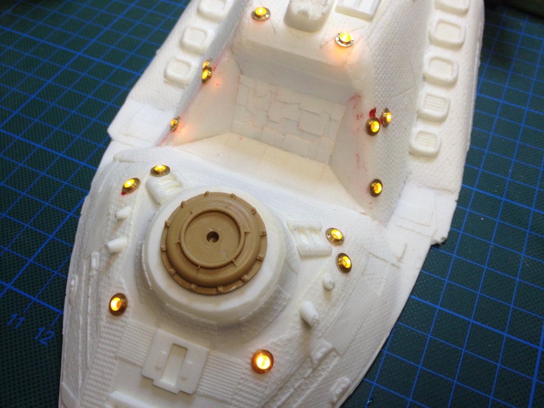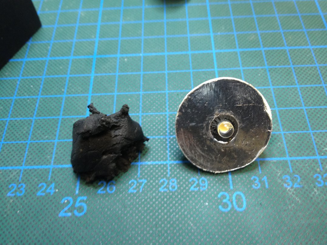 Hier der Trick: Die Dioden werden in schwarzes Milliput eingebettet. Ist zwar ne elendige Arbeit bei 20 Pods, aber ich will mich nachher nicht ärgern: