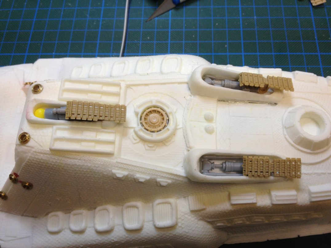 Ich hätte vielleicht angesichts der Rumpfgröße die Auflagefläche mit PS Platten vergrößert + dann die Ketten drauf - aber vermutlich soll das Ganze in die Schächte passen...