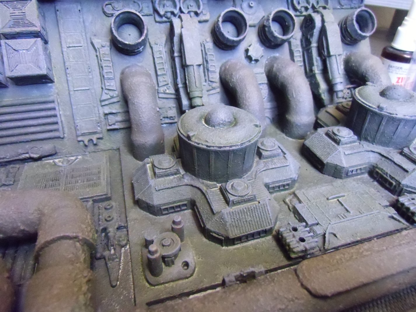 Ich wuerds auch so machen, wie Klaus zuletzt schrieb: Eisen-/Grautöne in allen Nuancen hin zu Rost-&Schmodderbraun. Vielleicht hat ein Rohr ja auch ein Leck und du kannst mit günlichem Schleim arbeiten? Duch die beleuchteten Hoverpads kommt ja auch nochmal Struktur, farbliche Nuancen und Tiefe hinein. Wenn dann die Hauptkomonenten jeweils ihre leicht unterschiedlichen Farben unter dem Einheitsschmodder haben, kanns doch nicht schief gehen. Ich wette, es sieht jetzt schon in Panzergrau um Längen besser aus, als in silber?! Vielleicht wurden auch Teile gewartet und erneuert? Wenn die Maschinen da noch was gemacht haben, könnte evtl. doch noch etwas in den oberen Lagen leichte Farbreste (=> Haarspray-T) haben?!
