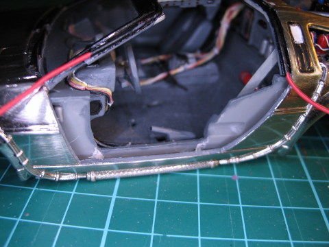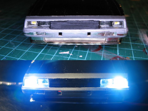Mit den vorderen Blinkern (die ja bei den Amis dauernd mitleuchten) habe ich schon angefangen - knifflig wird's bei den hinteren Seitenleuchten im Zierstreifen...