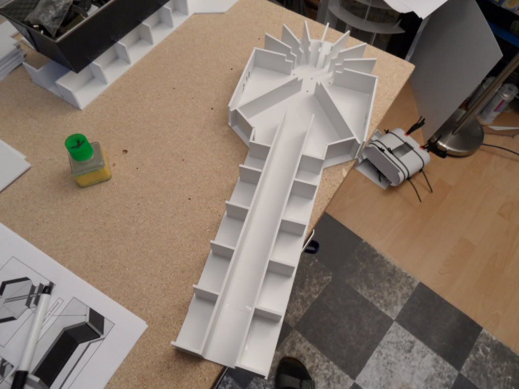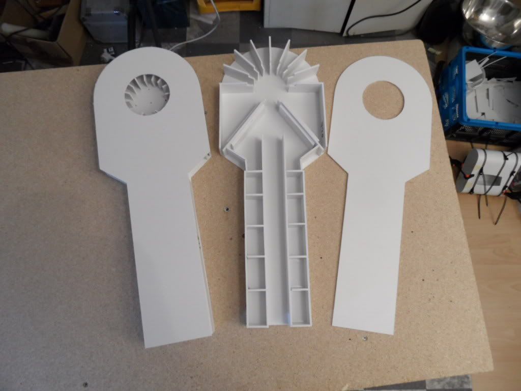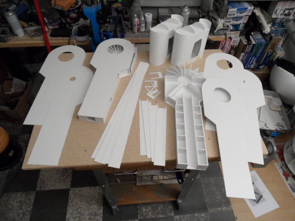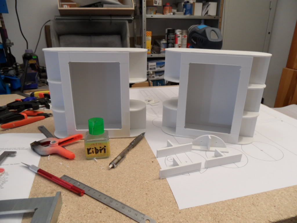 Und hier das Resultat mit allen bereits zugeschnittenen Teilen. Inklusive der Boxen..