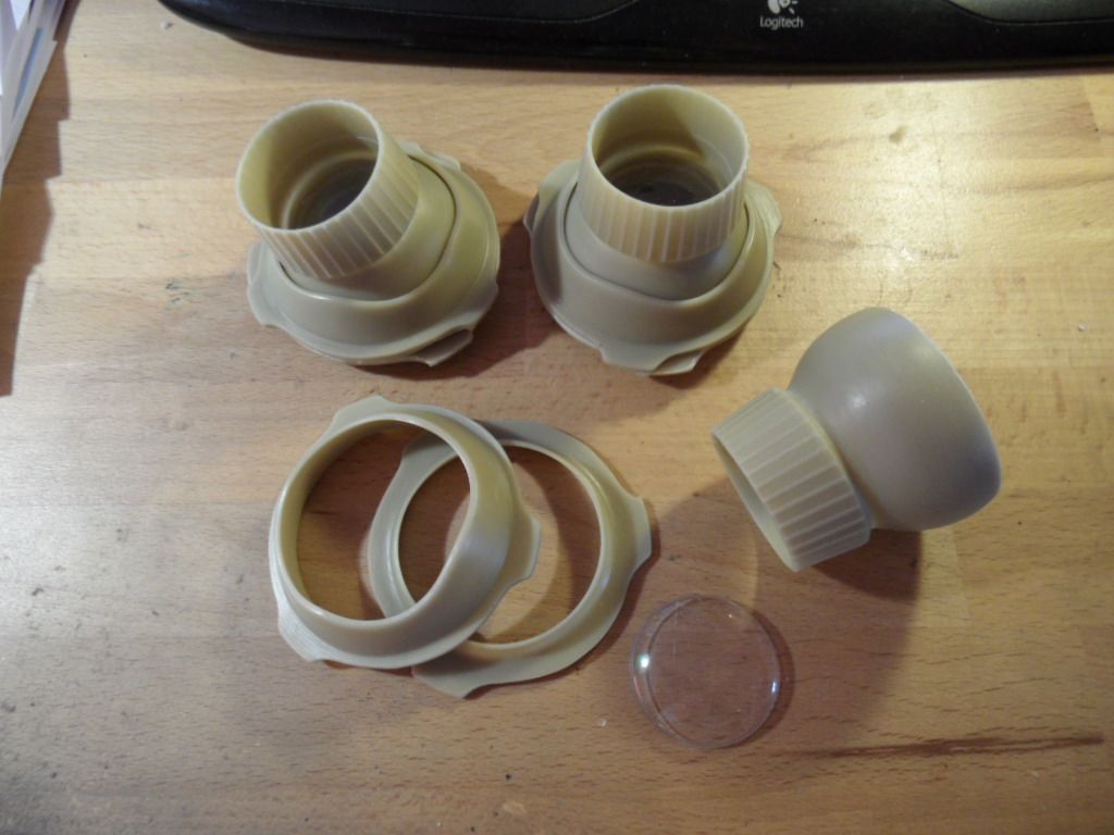 Und die Holo-Projektoren, ich hab etwas drauf bezahlt, um drei Stück bewegliche HPs zu bekommen. Ich möchte zumindest den vorderen Holo bewegen (alle werden beleuchtet), ein 2-Achsensystem mittels zweier Servos ist da geplant. Aber an den Anderen rumspielen ist dann möglich..  ;D