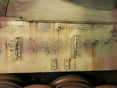 Saubere Arbeit, Meister ! Falls du dein Dio ordentlich rostig und mit viel Schmodder haben möchtest, schau mal hier vorbei:http://www.nproject.org/de/modellbahn-landschaft/wie-macht-man-rost-auf-die-modellen.htmlSind einige recht gute Tips dabei ! Die fertige Rostfarbe hab ich ja schon bei meinem Thedus-Dio für die Nostromo verwendet und die war gar nicht mal so übel (nach dem Auftragen des Oxidationsmittel konnte man direkt der Farbe beim rosten zusschauen! ). Als Alternative zum teuren Rostset, kann man die ganzen benötigten Sachen selber zusammenmischen! Dafür benötigt man: dunkelfarbigen Lack (dunkel ist nicht zwingend notwendig), feines Eisenpulver (eBay oder bei einer Schlosserei), Wasserstoffperoxid (Apotheke) und Wasser. Den Lack und das Eisenpulver schön vermischen, dann rauf mit der Pampe auf die Oberfläche, einen Tag warten und danach die ganze Gaudi mit dem wasserverdünnten Wasserstoffperoxid einsprühen (Sprühflasche aus Plastik verwenden) oder mit einem Pinsel wässern. Die Wasserstoffperoxidmischung solltest du aber vorher vorsichtshalber an einem Probestück testen um die richtige Mischung herrauszufinden !