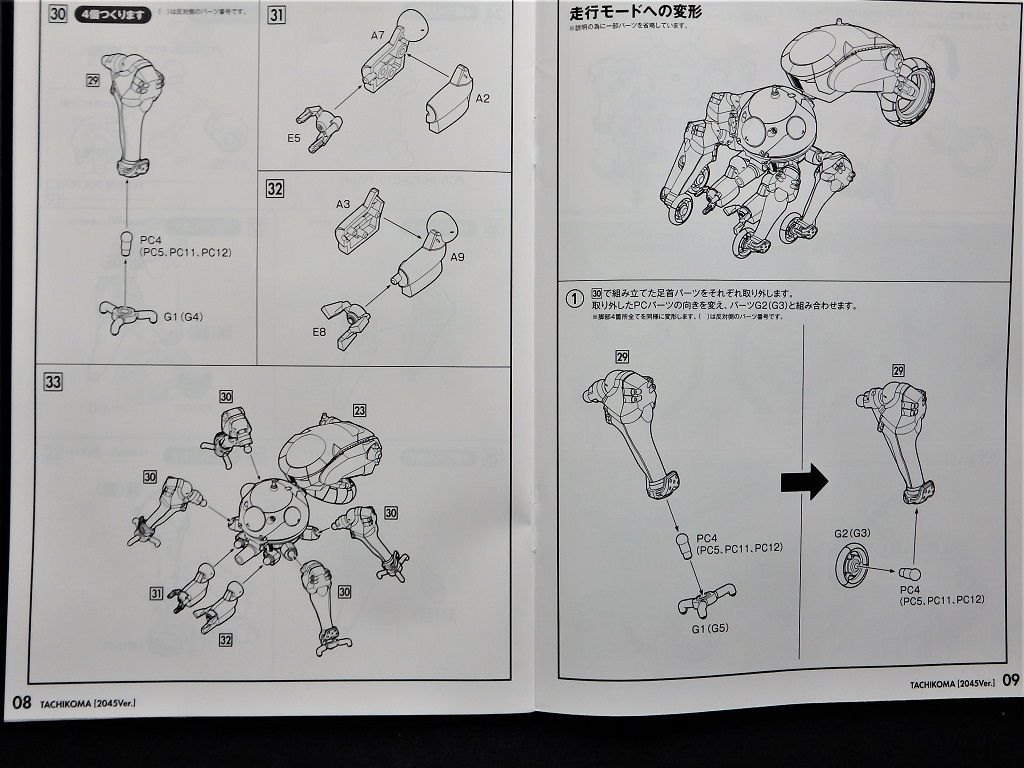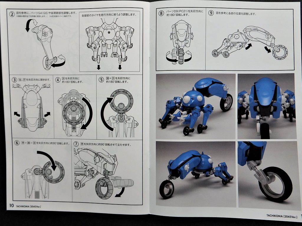 Die gut bebilderte japanische Anleitung. Davon sind 3 Seiten eine Transformations Anleitung, darüber wie man ein Rad nach hinten faltet und 4 Füße durch Räder ersetzt.