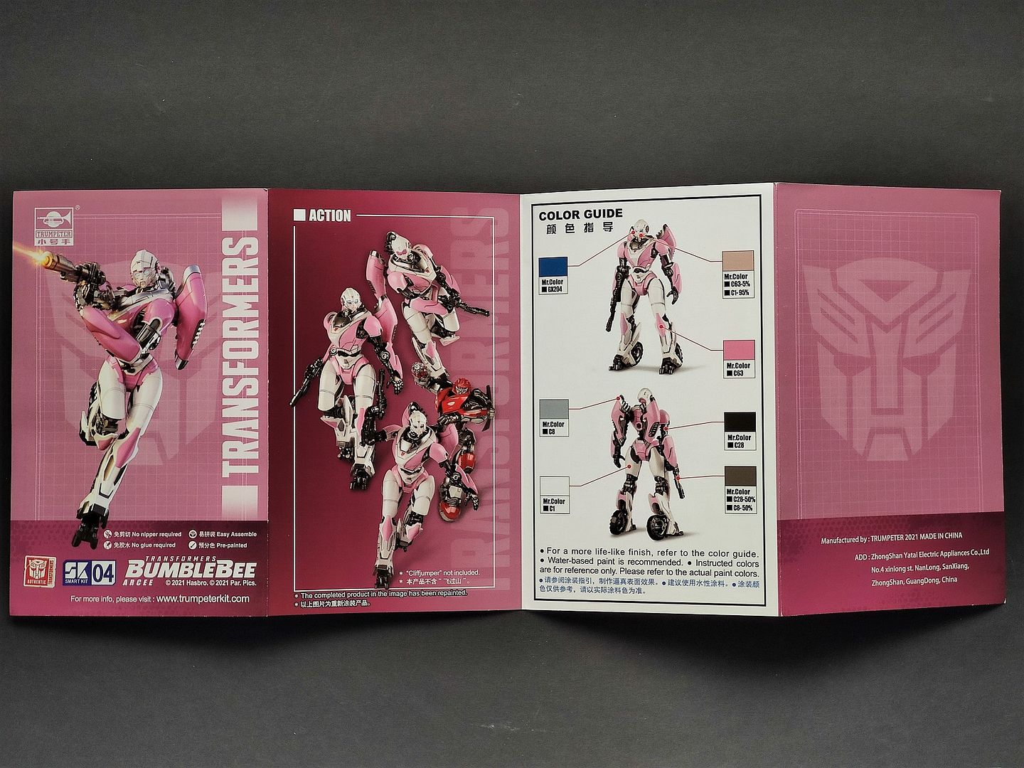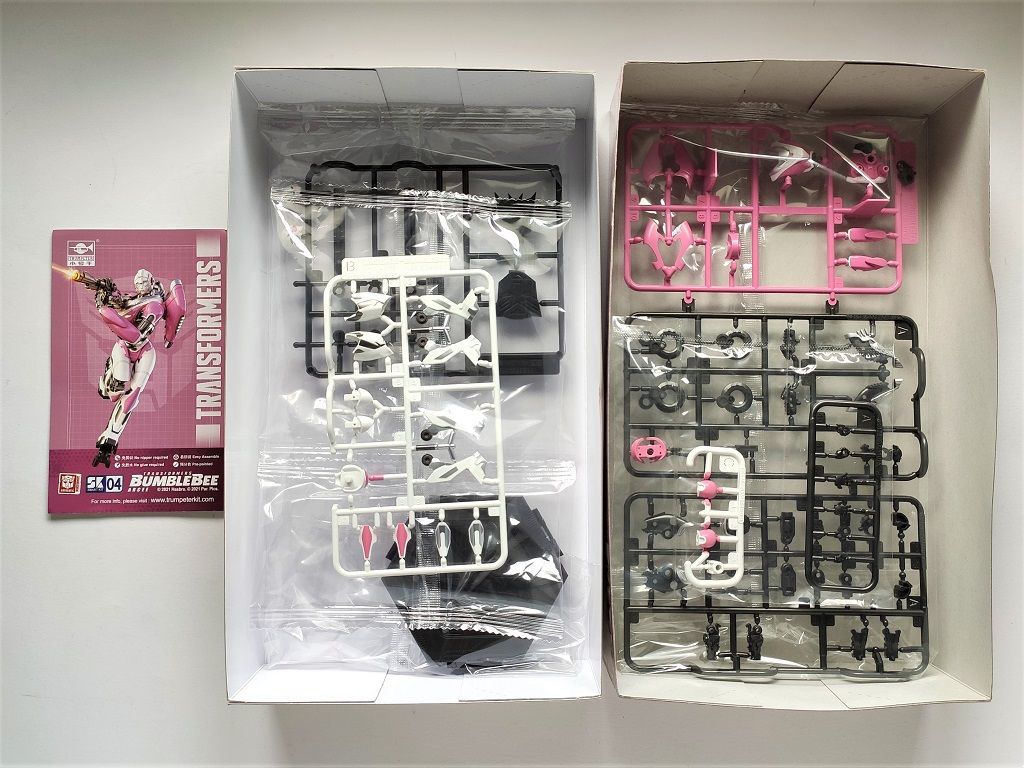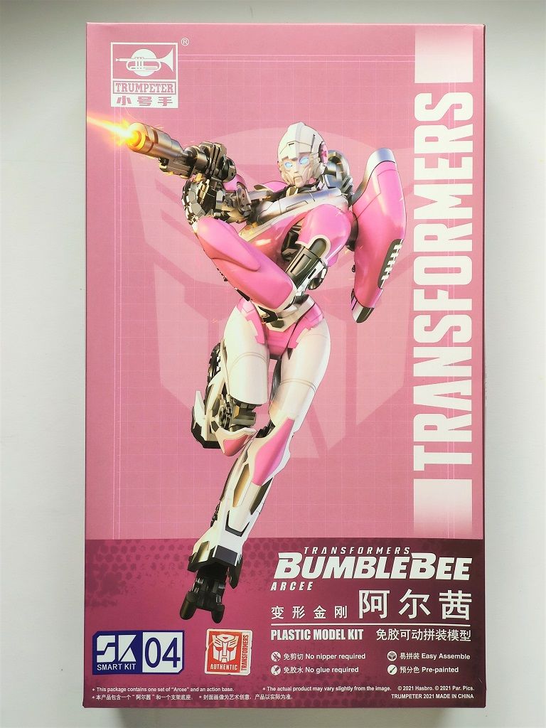 Das 4. Modell aus Trumpeters Transformers Bumble Bee Smart Kit Reihe. So langsam gewöhnt man sich an die tolle Qualität, wenn auch die fertigen Modelle recht winzig erscheinen. Man erkennt aber trotzdem, dass man mit jeden neuen Modell was neues probieren möchte. Arcee hatte im Bumble Bee TF Film nur einen kurzen Auftritt am Anfang des Films als Kommunikations Offizier.
