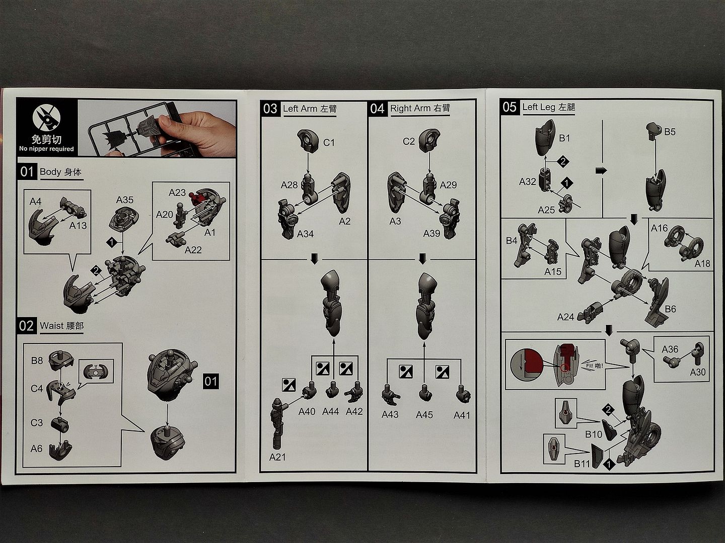 Anleitung in chinesischer und englischer Sprache: