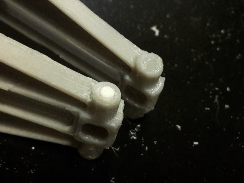 Die Kugelgelenke sollte man auf jeden Fall mit Stahldraht (ich nehme 2mm) stiften, oder ggf. aus passenden Perlen nachbauen, sonst ist das etwas schwergängig und ungewollte Sollbruchstelle.