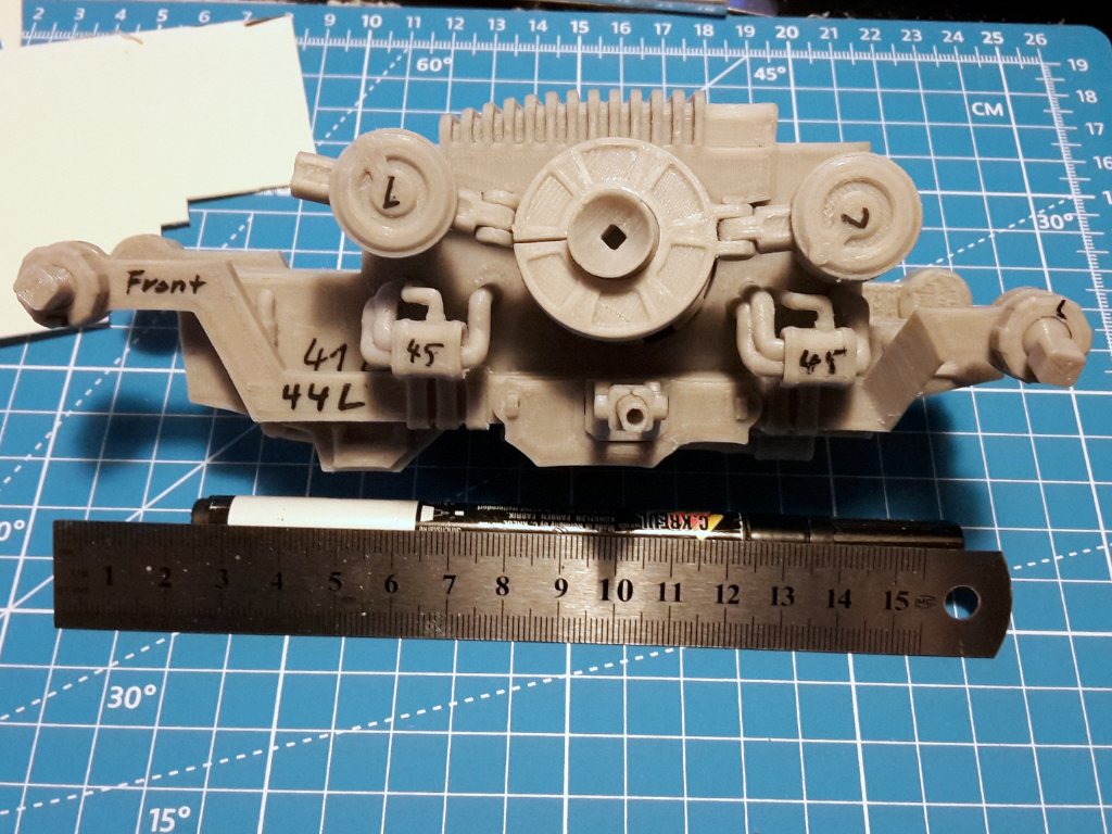 Druckbarkeit ist ganz ok, Supports muss man selbst schauen, aber das meiste lässt sich ohne drucken. Manches drucke ich wie so oft zusätzlich manuell gesplittet (also halb ins Druckbett versenkt, und dazu passend die andere Hälfte), und zumindest bei FDM muss man manche Steckteile natürlich auf Passung schleifen.