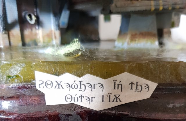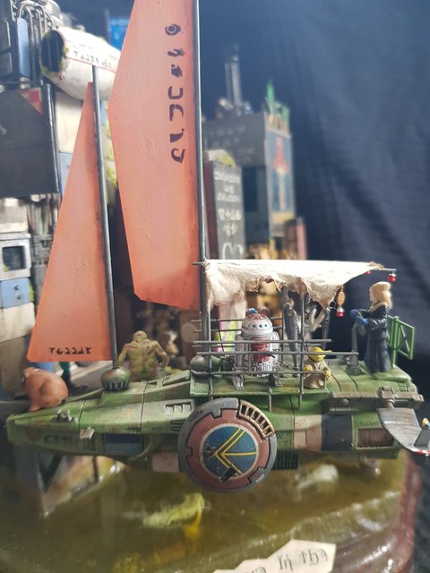 Ich erlaube mir weder in Aurebesh (wie hauptsächlich in dem Diorama verwendet) noch in Klingonisch oder in Zeichen der Heptopoden zu schreiben.