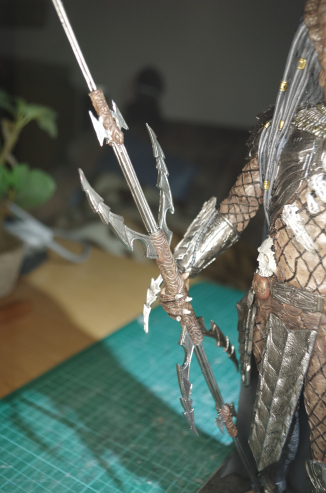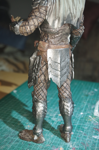 Hier habe ich noch Details ergänzt, auf die "Trophäen" kommt noch Weiß trockengemalt. Und die Geduldsarbeit Netzklamotten...