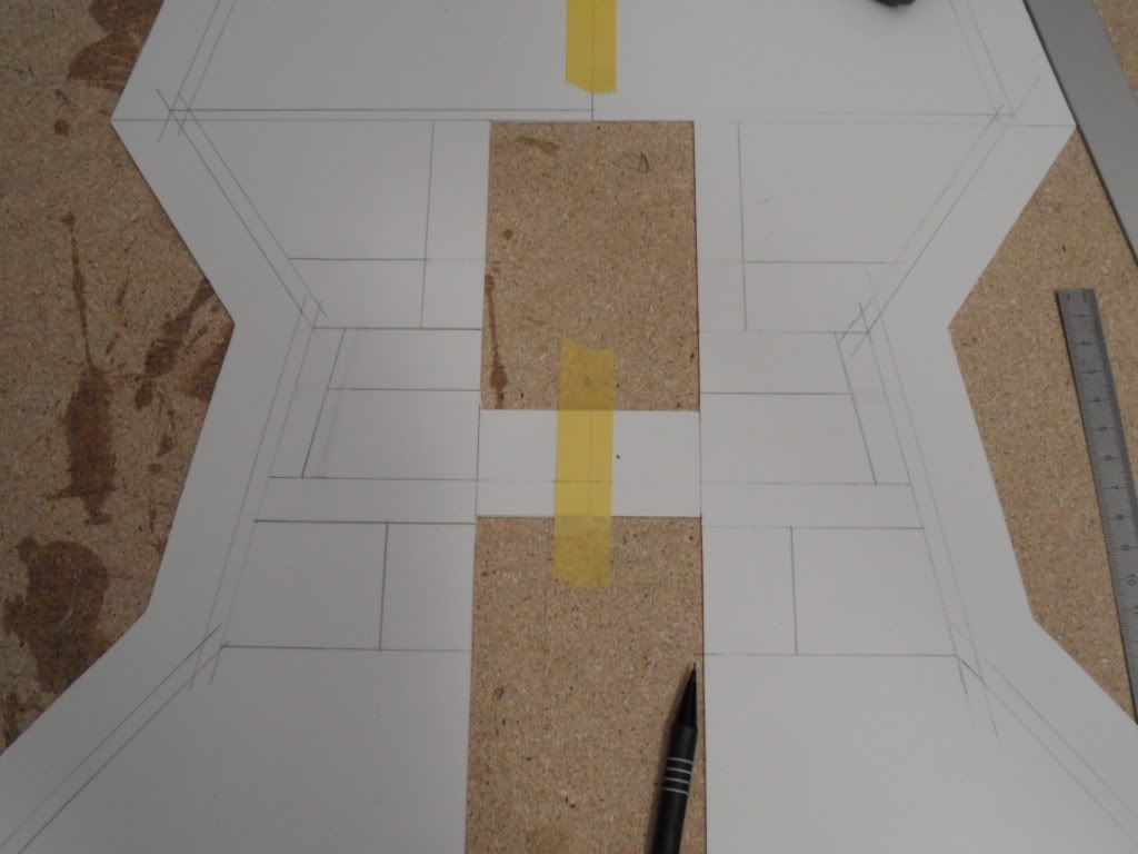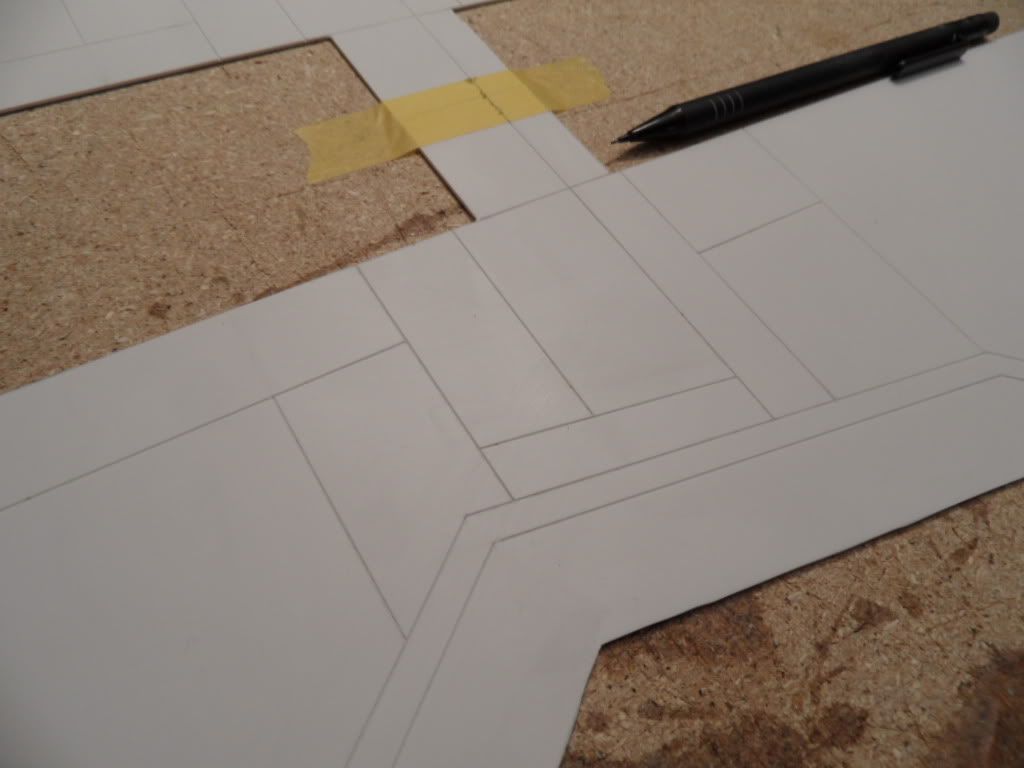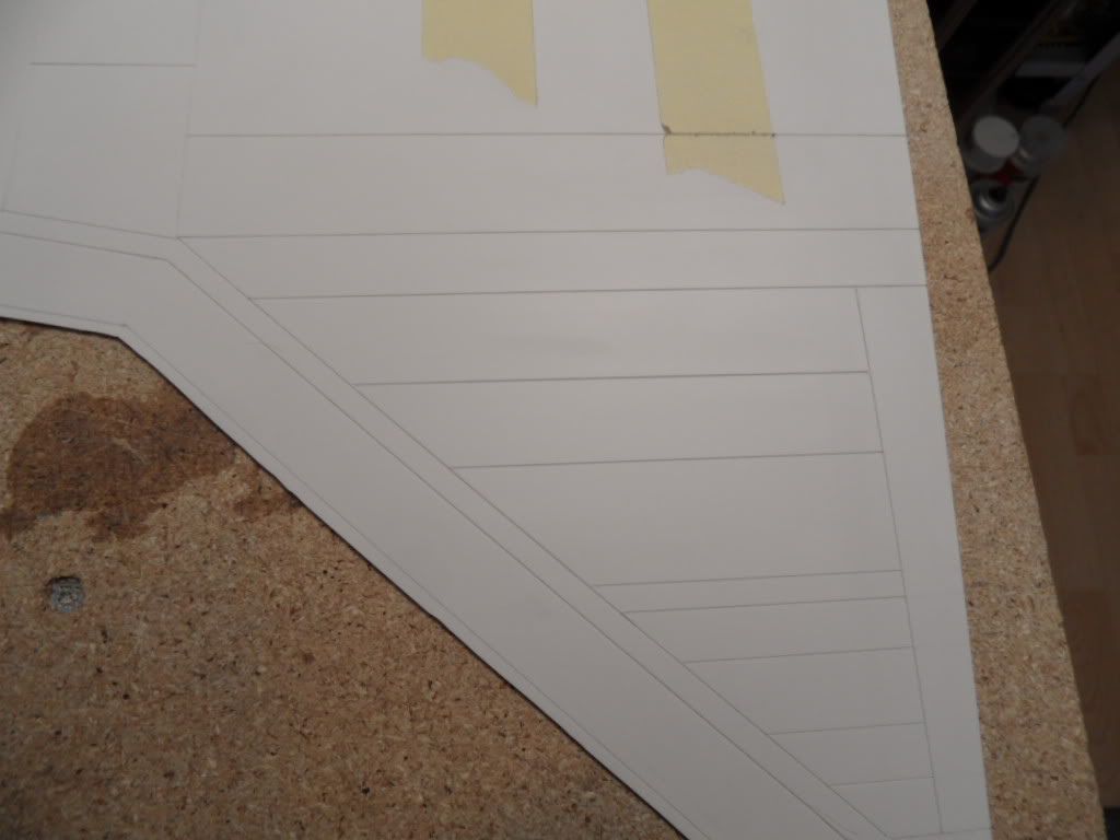 Ich habe angefangen, die dicken Panellines aufzumalen. Das sind die, die mit dem etwas dickeren Gravierwerkzeug gemacht werden. Das, was so gezogen werden muss.