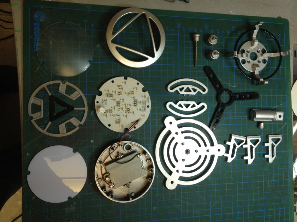Die "Arme" die das Dreieck in der Mitte halten sind Festplattenleseköpfe, die Teile vom Original fand ich zu popelig.