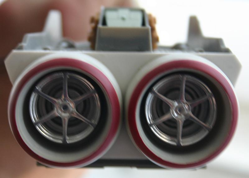 Also nachdem ich nun endlich mein Sheet in unterschiedlichen Stärken bekommen habe, konnte ich auch am Heck weiterkommen. Dafür habe ich kurzerhand 2mm Sheet genommen und passend vorgebohrt. Tja passend war dann auf einmal garnix mehr, so das ich die erste Platte verwerfen durfte und eine weitere anfertigen mußte! Danach passte es dann aber auch wirklich. Also Felgen von innen geklebt und von aussen die Triebwerksteile des ARC-170. Kabel verlötet, getestet, eingepasst, wieder getestet, verklebt und nochmals getestet! Zum Glück hab ich trotz ewiger Abstinenz vom Löten weder die LED´s noch Widerstände geschrottet und nach der Verklebung etc funktioniert auch noch alles. ;) Hoffe nur keine kalte Löstelle produziert zu haben, so das in Zukunft was passieren könnte. Ein Video dazu kann ich heute noch nicht anbieten, ist einfach zu hell um den Effekt einzufangen. Denke dies wird morgen geschehen, aber ich habe schon Bilder mitgebracht!