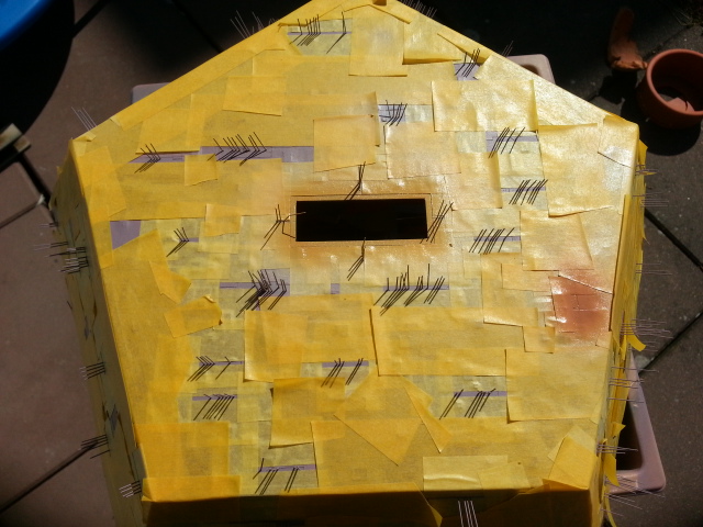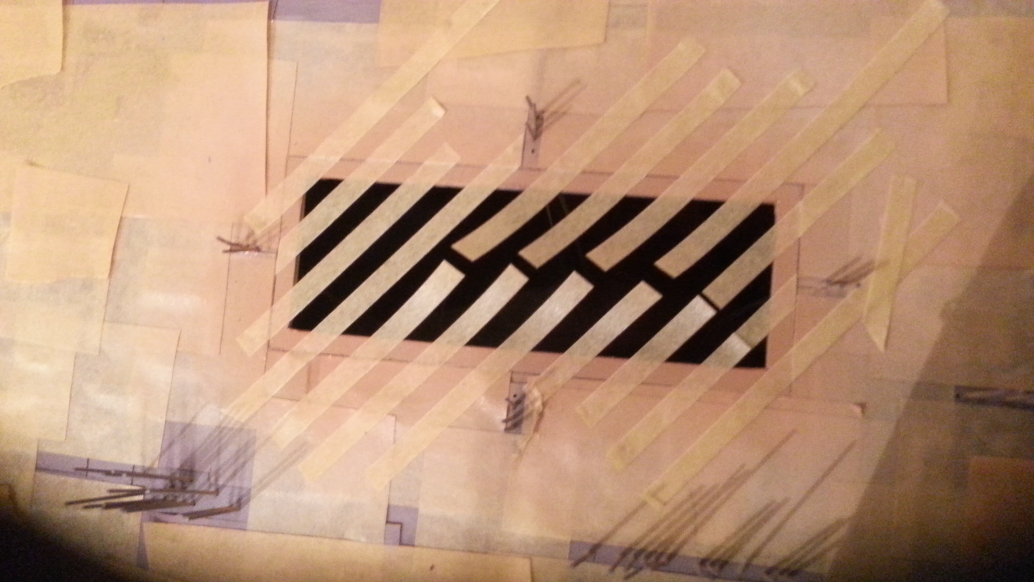 Da brauchst du die Panellines auch nur von einer Seite abkleben. Mit der einen Hand hältst du ein Stück Fotokarton mit dem du die gegenüberliegende Kante fliegend maskierst. Mit der anderen wird gepinselt.