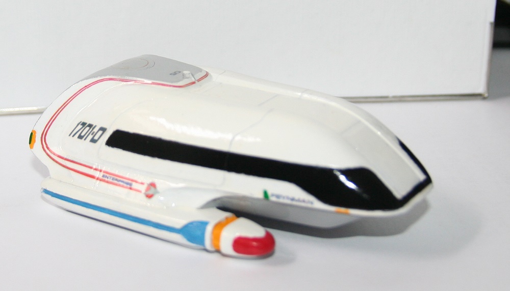 Über die Feiertage hab ich es endlich geschafft,die beiden Shuttles fertigzumachen. Zum Zusammenbau gibts bei drei bzw.vierTeilen nicht viel zu sagen. Sekundenkleber hat gut funktioniert. Die Farbgebung ist nicht ganz so wie die Originale, aber es sind nur Details und mir gefällts so besser. Jetzt fehlt noch eine schöne Base.