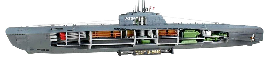 Die Grundform, die ich gefunden habe, ist ein Cutaway Rumpf eines Ubootes von Revel. Hier mal ein Bild, ohne das unsere Threats ja fast uninteressant sind :)