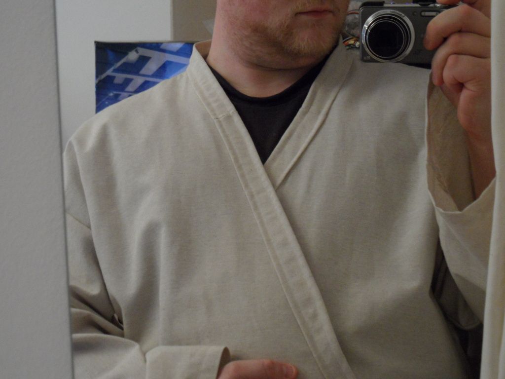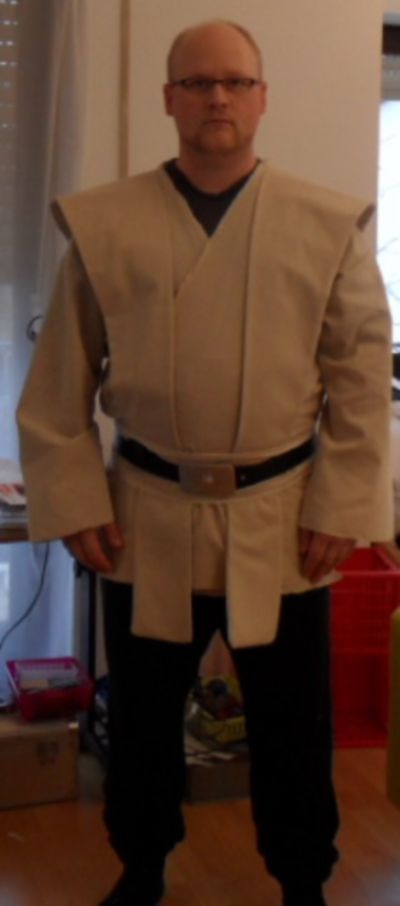 Zum Stoff: Ja, ich find den auch megacool. Werde mir voraussichtlich noch ein paar Meter davon besorgen, ich plane ja noch ein bodenlanges Jedi. Outfit wie Obi Wan auf Tatooine. Dafür hätte ich auch gerne diesen Stoff.