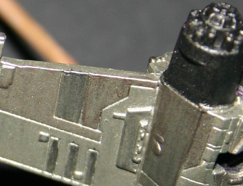 Den Rahmen des Cockpits habe ich einfach schwarz gehalten, sieht jedenfall besser als das Standardgrau aus. Die Waffen habe ich in einem Grauton gemalt und hier einen Kontrast mit einem rechten matten Normalton geschaffen.